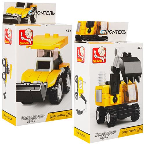 Дитяча іграшка конструктор будівельна техніка SLUBAN M38-B0592 Builder 4 види від 36 деталей в кор.16-16,5-14,5см