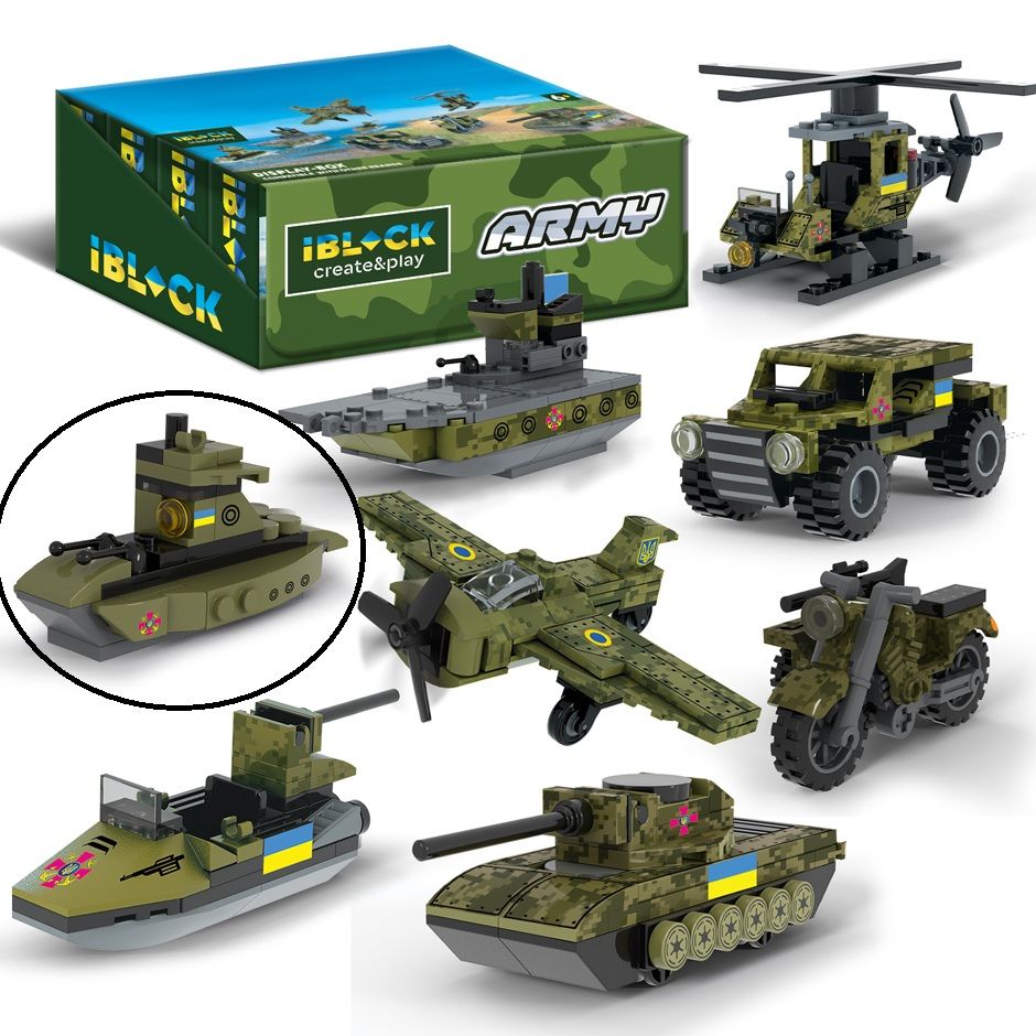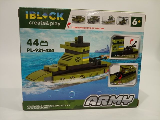 Дитяча іграшка конструктор військовий катер IBLOCK арт. PL-921-424 (4) Армія, 44 деталі, р-р уп-ки 16*5*13см