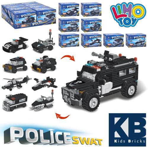 Дитяча іграшка конструктор поліція транспорт від 42 деталей KB 5901, (8 видів) в диспл., 25,5-18,5-9 см.