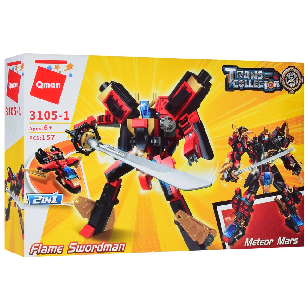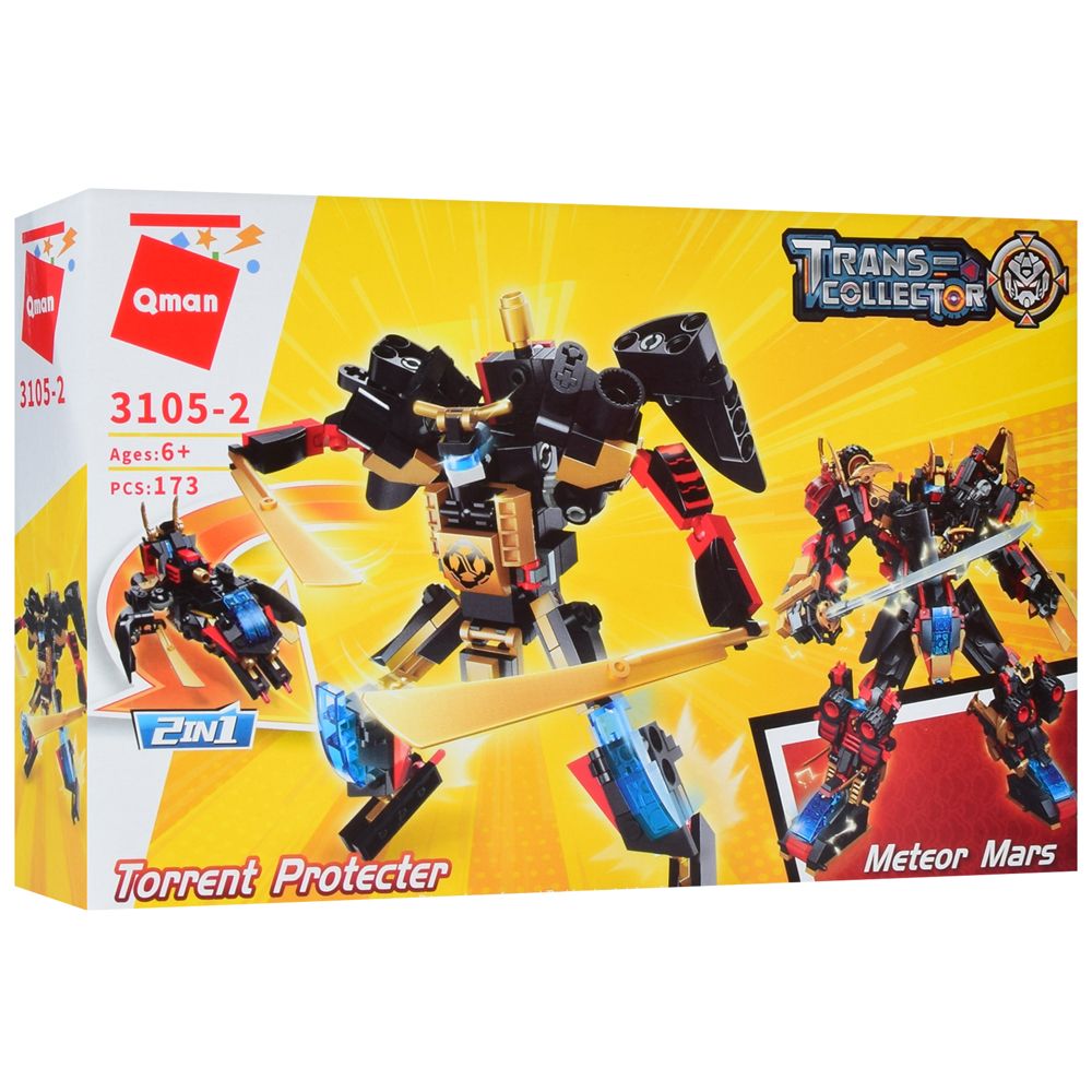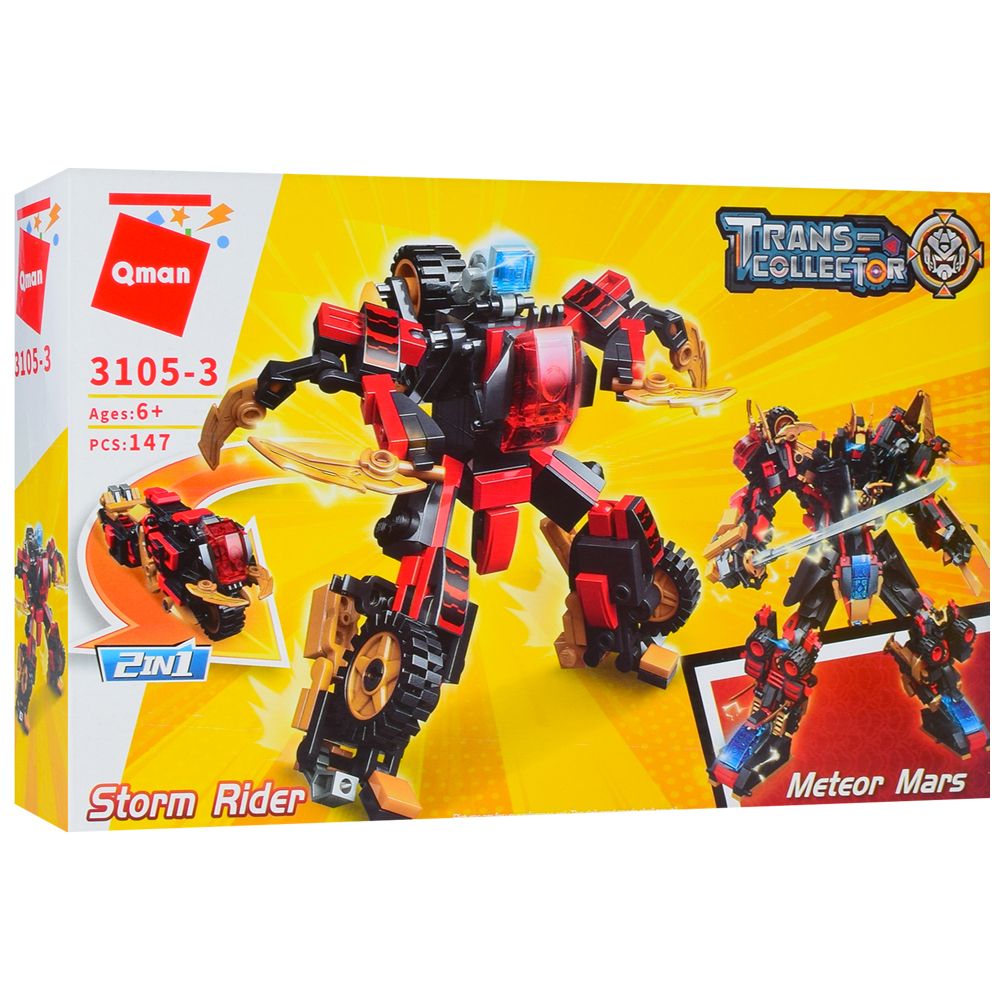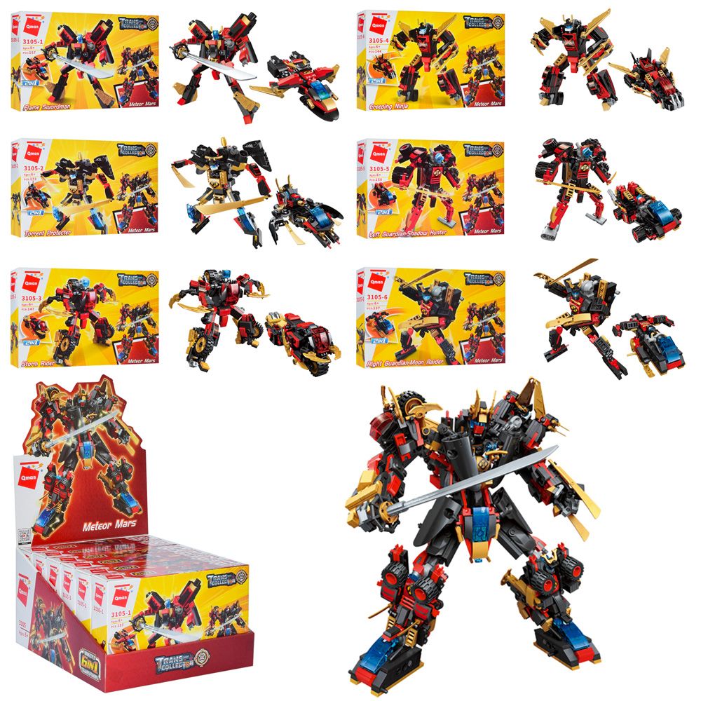 Дитяча іграшка Конструктор Qman 3105 трансформер (робот+машинка), від 137дет., 6шт. (6видів) в диспл., 23-14-28см.