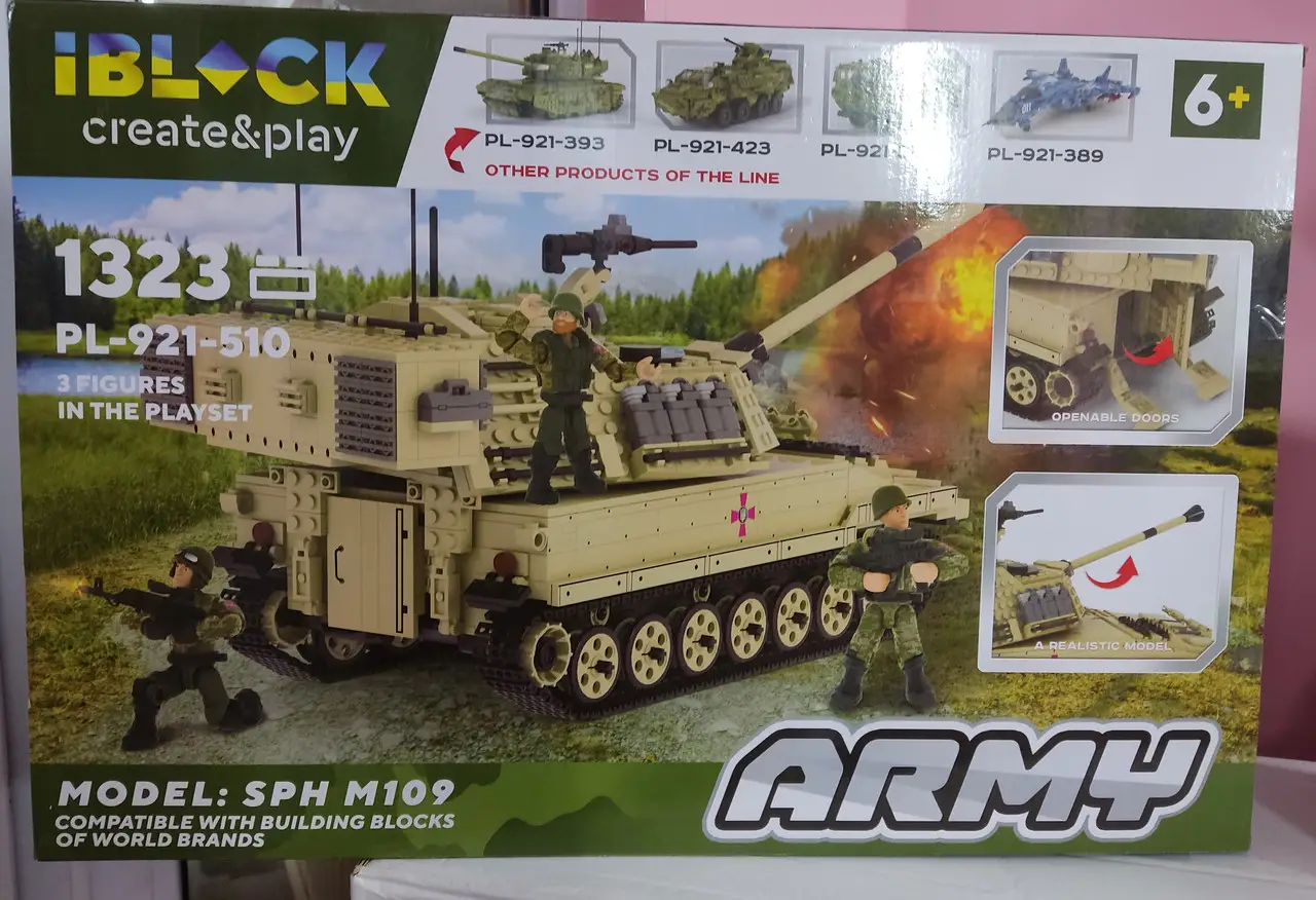 У наборі 1323 деталі та фігурки воїнів, а головною моделлю є реалістично стилізована самохідна артилерійська установка M109, яка існує у справжніх збройних силах.