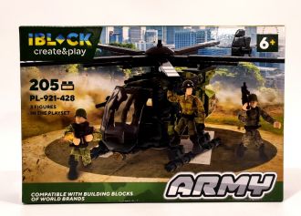 Дитяча іграшка конструктор військовий гелікоптер IBLOCK арт. PL-921-428(1) Армія, 205 деталей, р-р уп-ки 24*4,5*16см