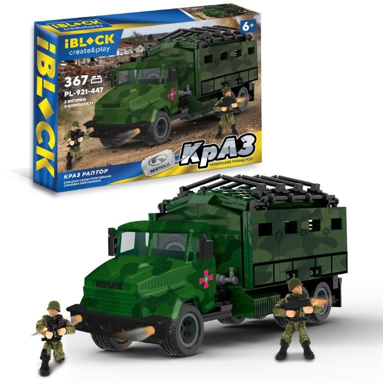 Дитяча іграшка конструктор військовий КрАЗ РАПТОР IBLOCK PL-921-447 АРМІЯ 367 деталей, 2 фігурки, в кор. 38*6,4*28 см