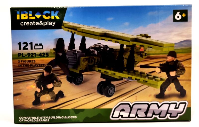Дитяча іграшка конструктор військовий літак 121 деталь + 2 фігурки солдатиків IBLOCK арт. PL-921-425(2) Армія , р-р уп-ки 22*4,5*14см