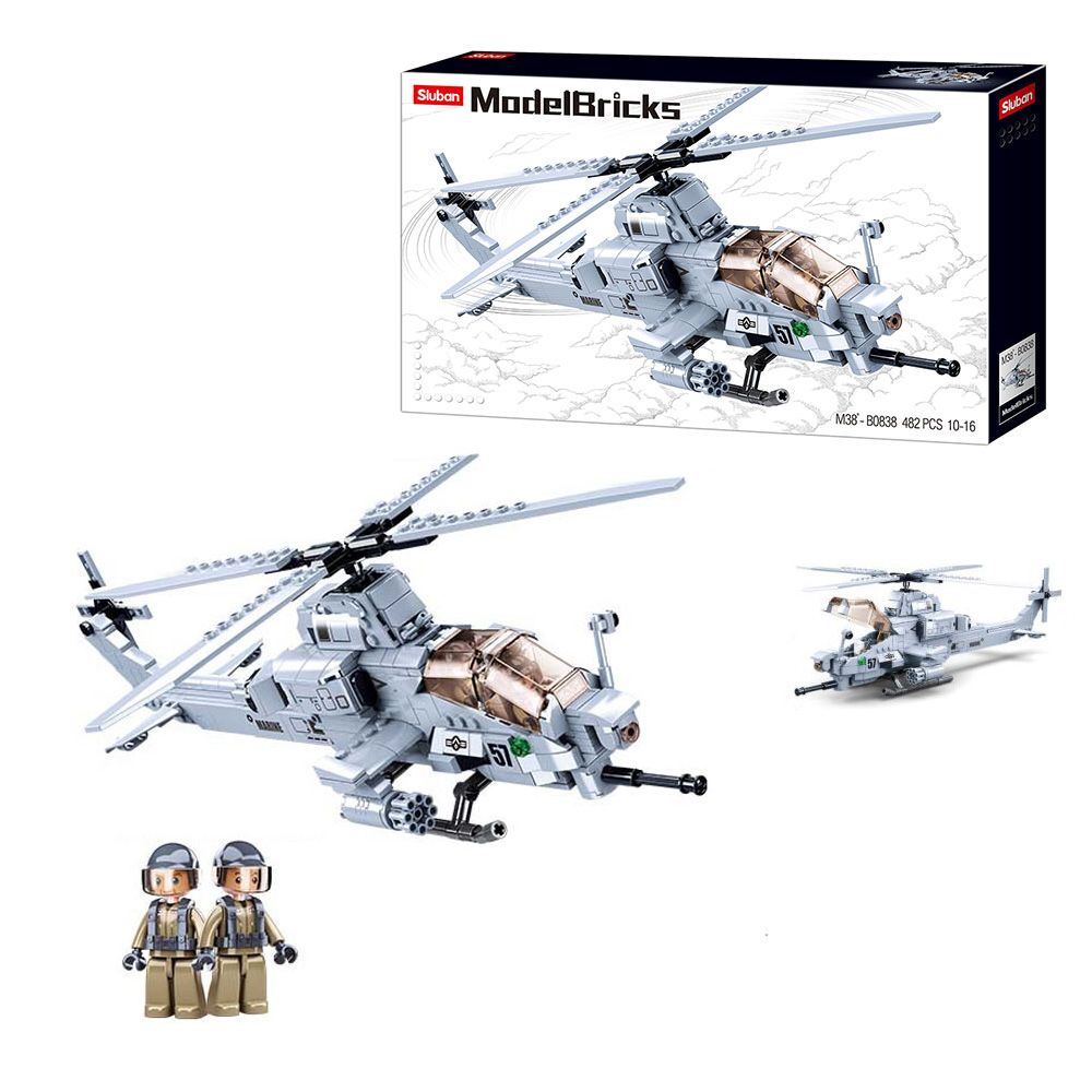 Дитяча іграшка конструктор віськовий гелікоптер Вайпер AH-1Z 482 деталі Model Bricks SLUBAN M38-B0838