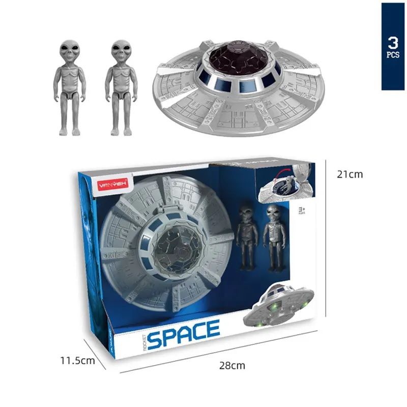 Комплектність: літаюча тарілка – 1 шт, фігурка інопланетянина – 2 шт.