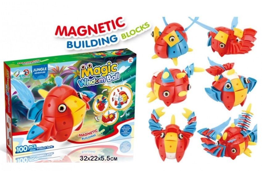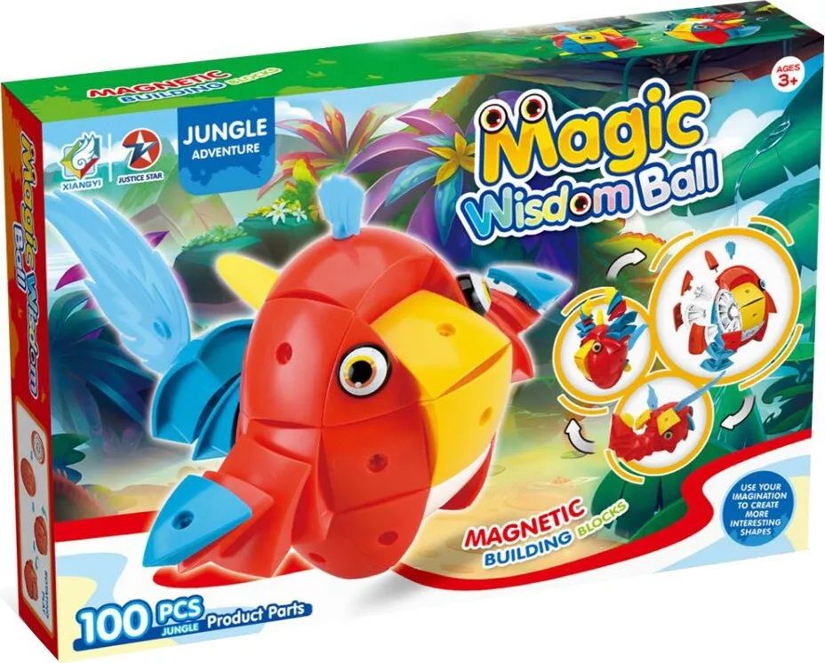 Xiangyi Пригоди в джунглях 100 деталей (6910010116117) - унікальний магнітний конструктор в основі якого лежить металева кулю, а до нього на магнітах кріпляться інші елементи.