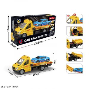 Дитяча іграшка машинка евакуатор трейлер арт. 666-66P батар.,звуккові ефекти (три режима), двері відкриваються, легковий автомобіль в наборі, короб. 29,5*9,3*12см