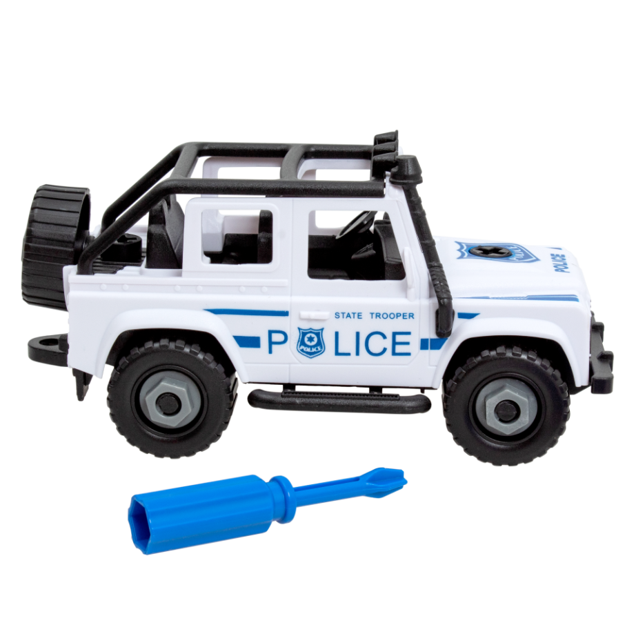 Поліцейська машинка (з викруткою).Виріб виконаний із пластмаси. Комплектність: викрутка, машинка. Машинка розбирається на частини за допомогою викрутки.
