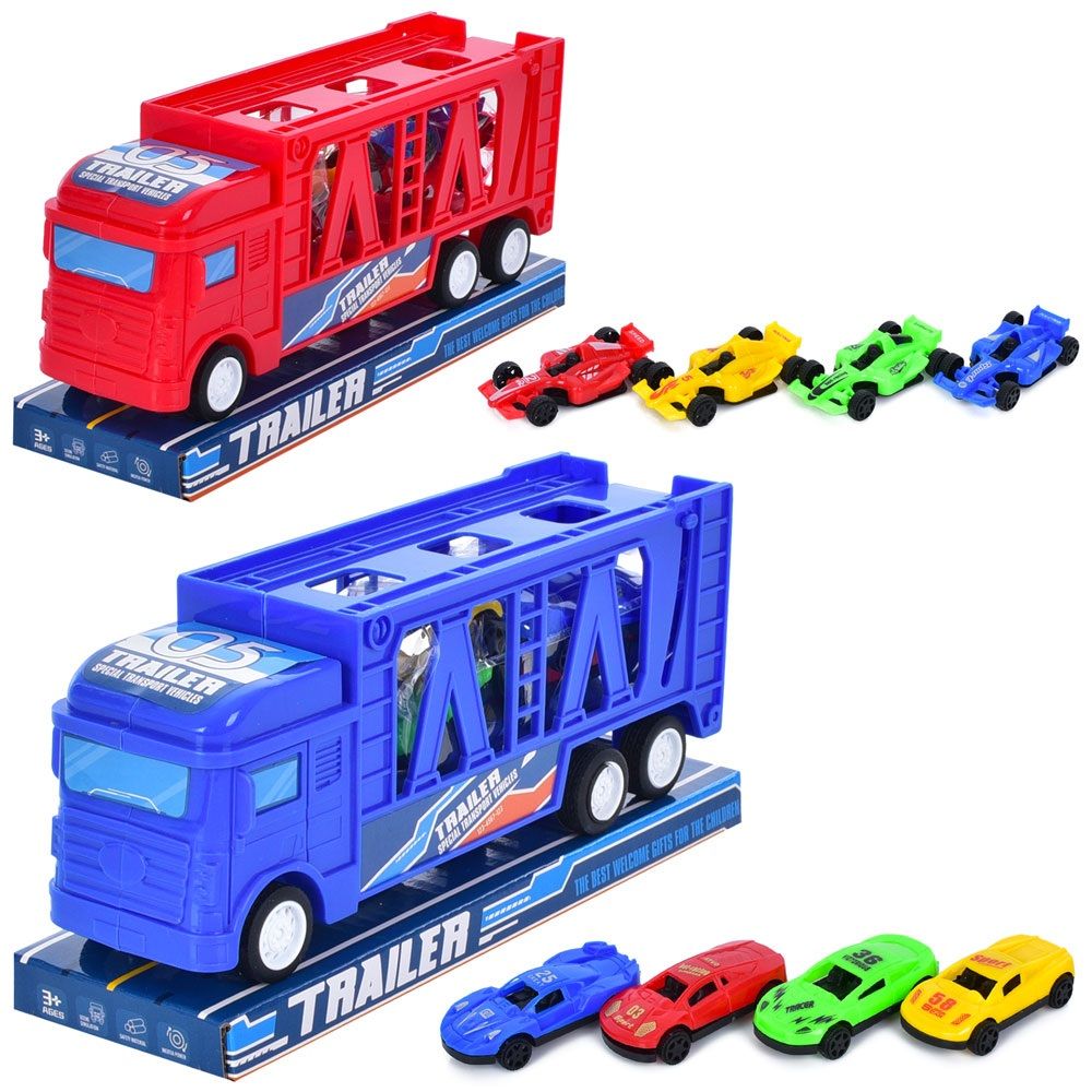 Дитяча іграшка машинка трейлер 588C-1-2 19, 5см інерційний 2 види 4 машинки