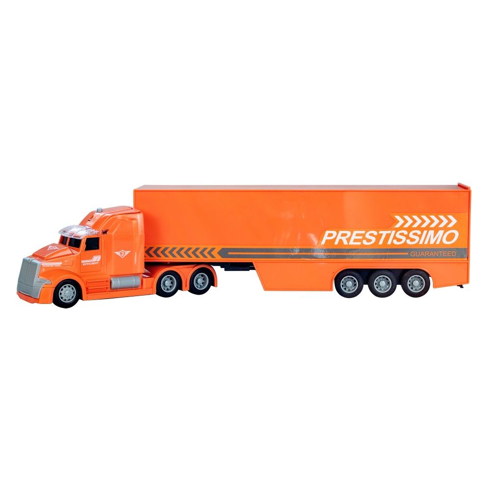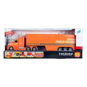 Іграшковий трейлер володіє світловими і звуковими ефектами, щоб надати грі максимальну реалістичність, а наявність інерційного механізму дозволить відчути себе справжнім водієм такого великого автомобіля. Іграшка має яскраву помаранчеву забарвлення і виготовлена з якісної пластмаси.