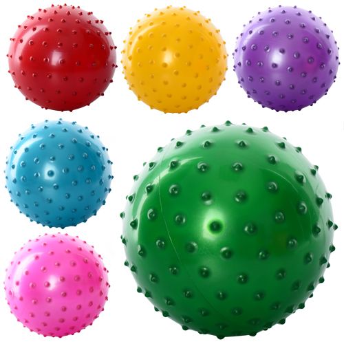 М'яч дитячий надувний Розмір: 5 дюймів Вага: 30 грам Вид: масажний (шипована) Матеріал: якісний ПВХ
