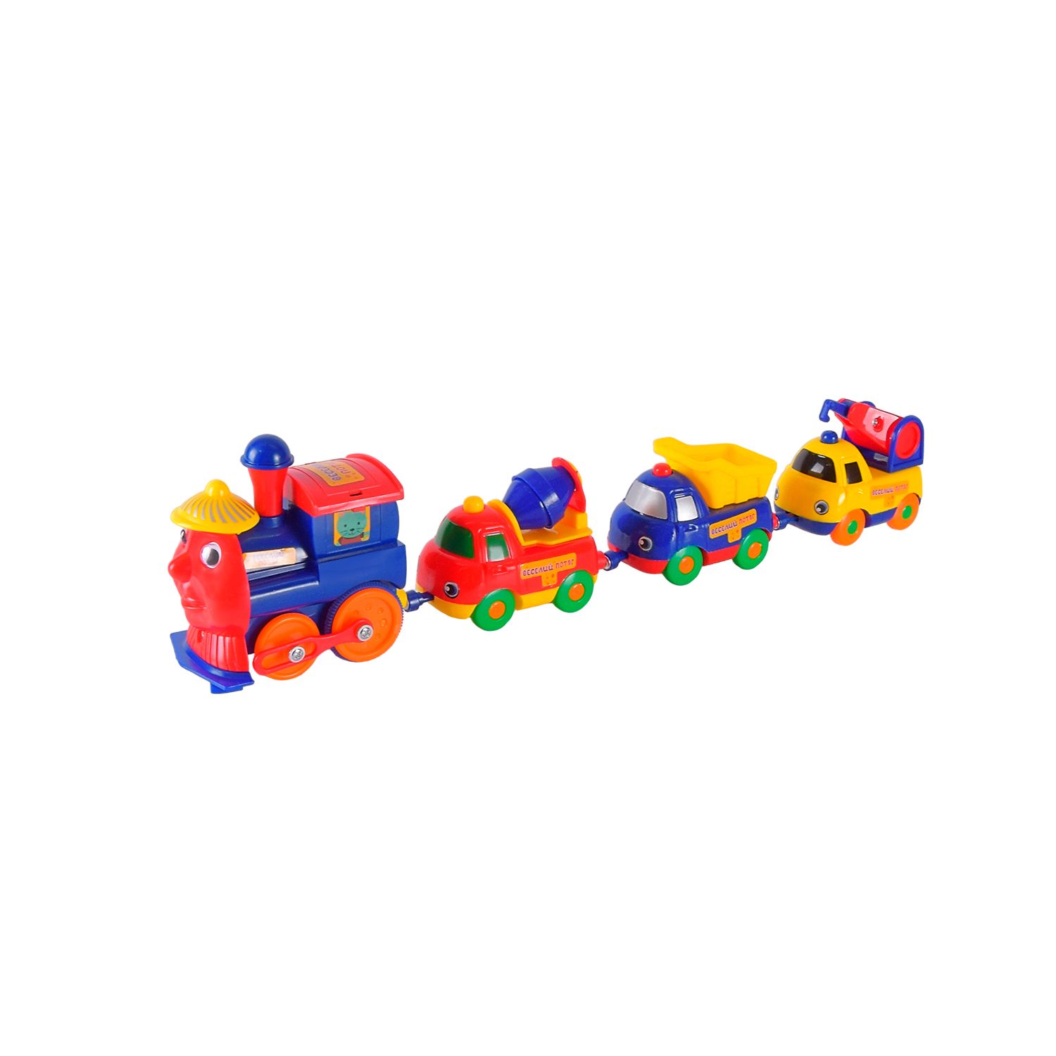 Вагончики виконані у вигляді будівельних машин і кріпляться до паровоза і між собою магнітиками.