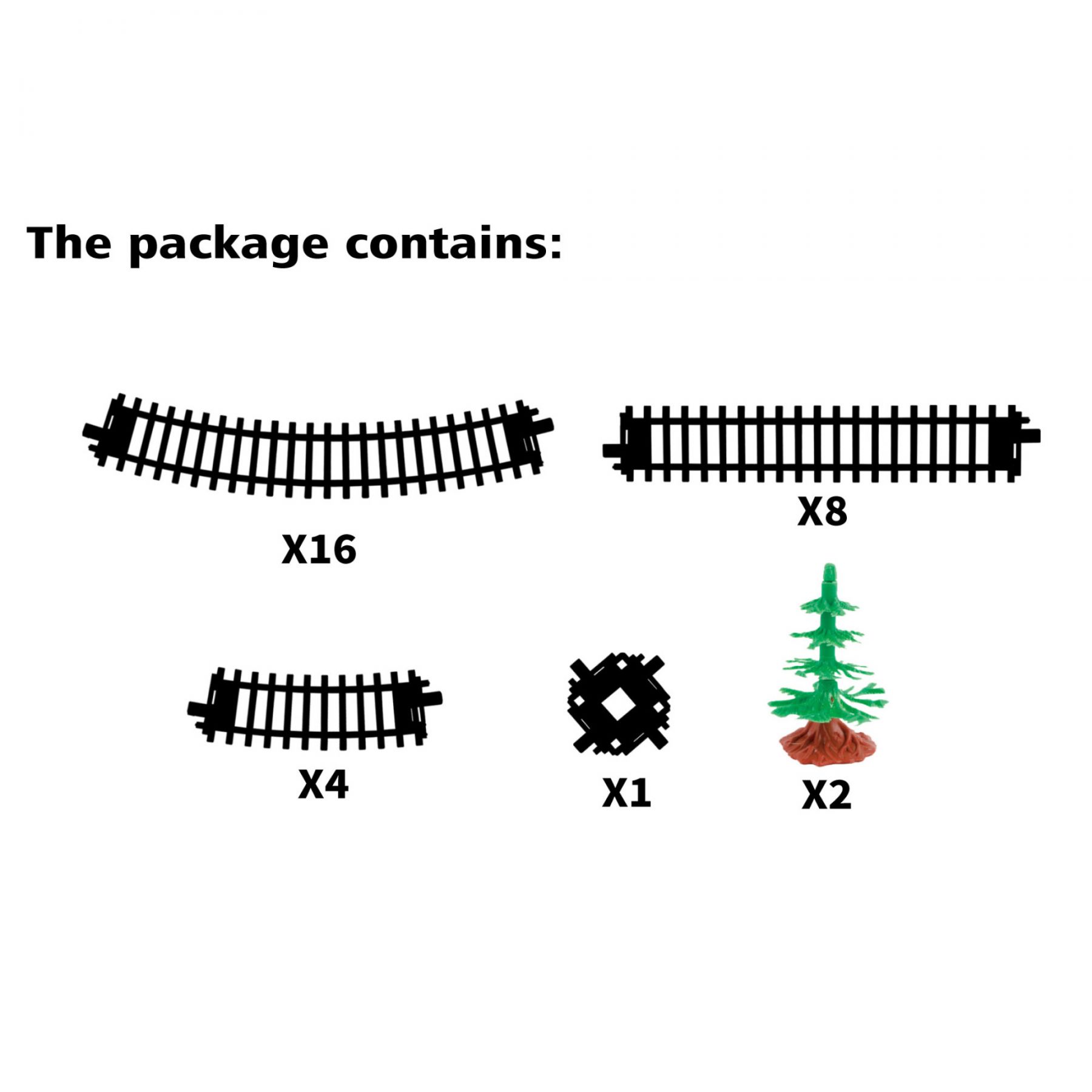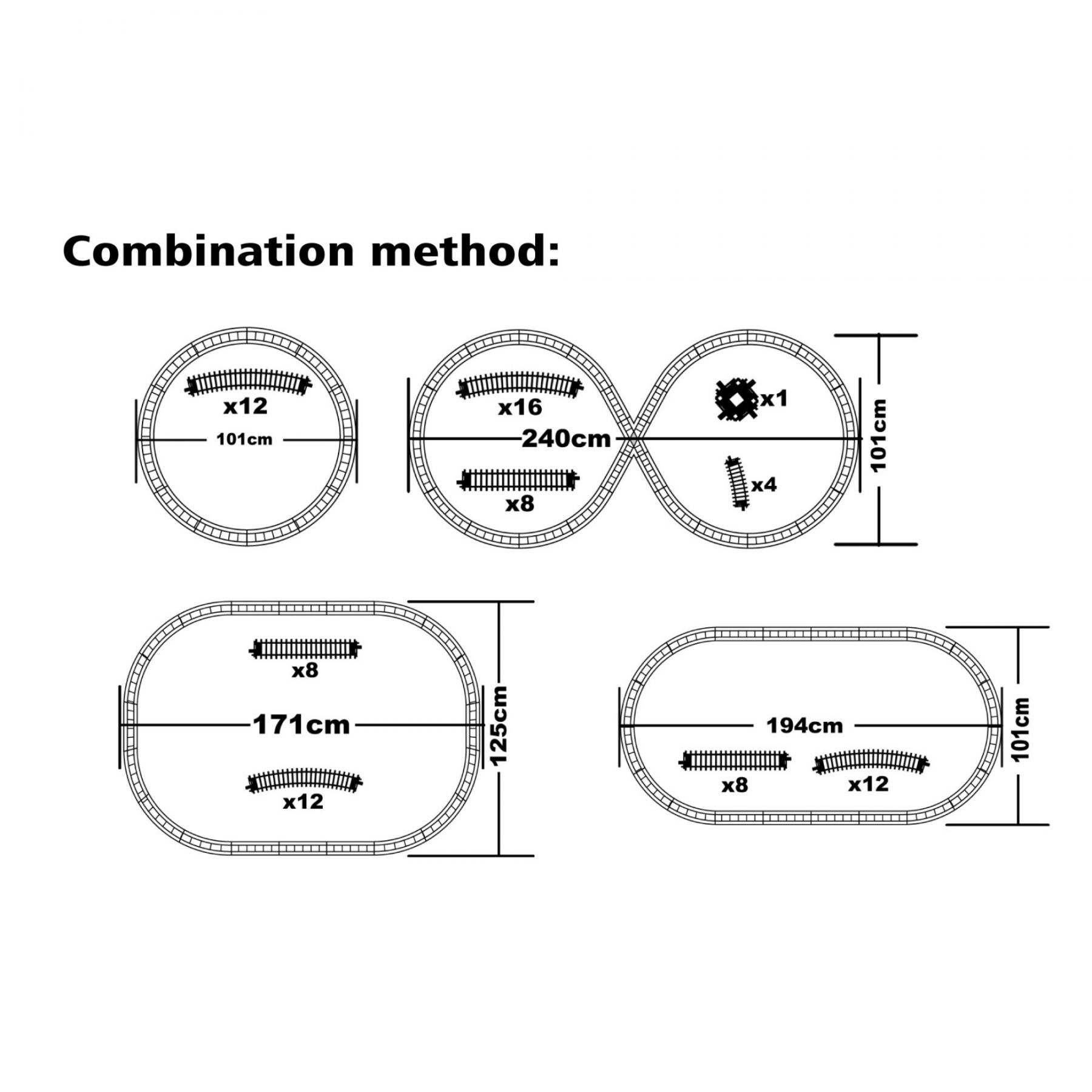 У комплект входять чотири вагони, а також набір рейок, які можна зібрати біля різних конфігурацій овальної трасі.
