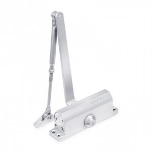 Дотягувач (довідник, доводчик) дверний Notedo DC-80 HO EN 2-4 накладний, з фіксацією на корпусі (90° и 110°). Сила 2-4 по EN 1154, вага створки до 80кг., ширина стулки 1000 мм. Регулювання швидкості закриття та дохтоп. Вугол відчиненняя при EN2-180°, при EN4-110°. Полегшене відкриття. Температура до -38 °. Колір серебряний (silver).