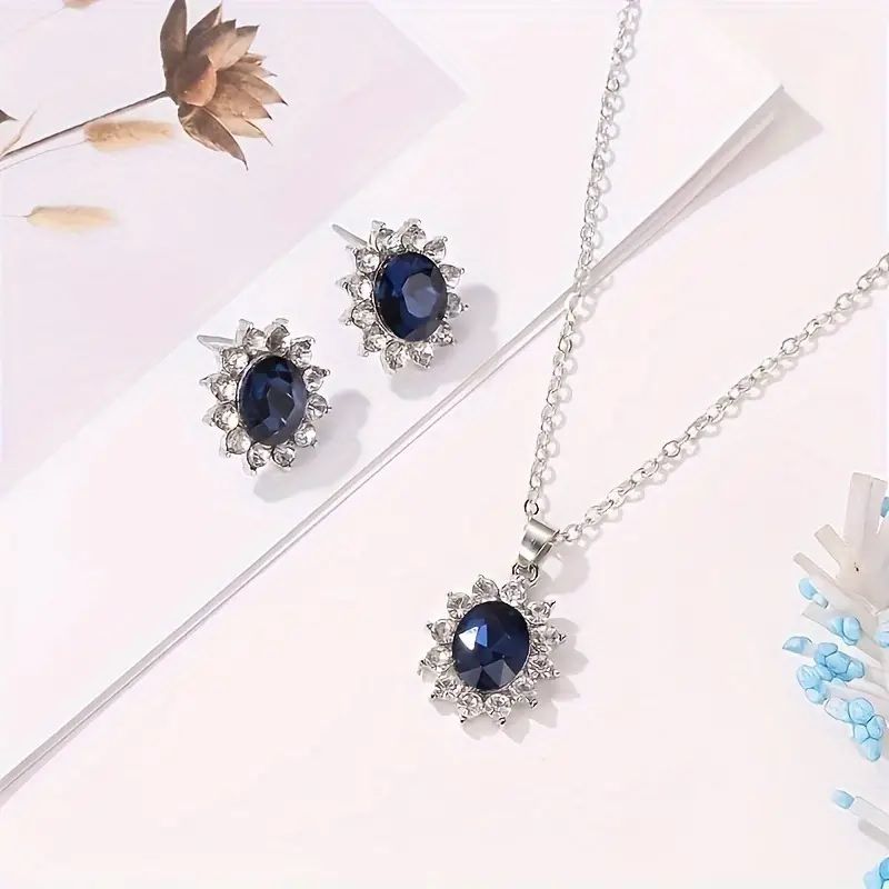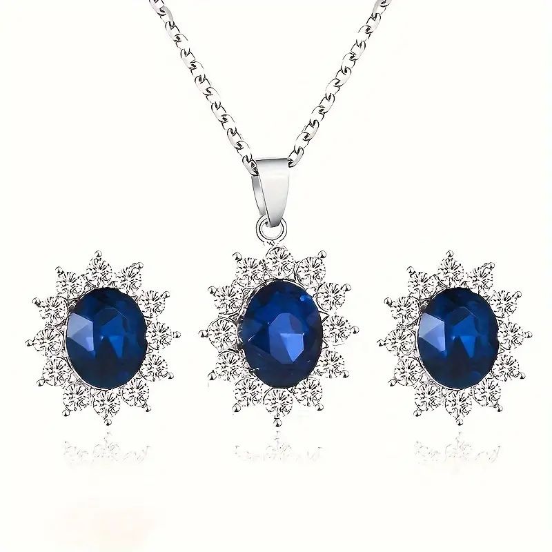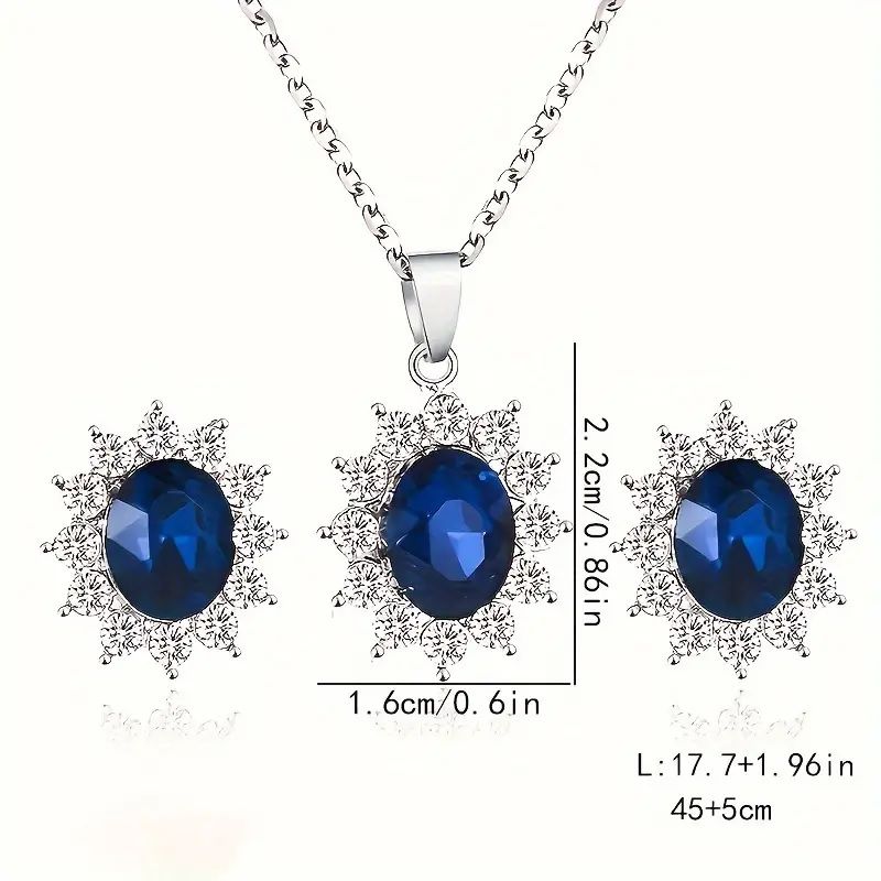 Елегантне намисто та сережки із штучним камінням 51159-YIN-E (прикраса для шиї, аксесуари для дівчат) метал колір синій/срібло
