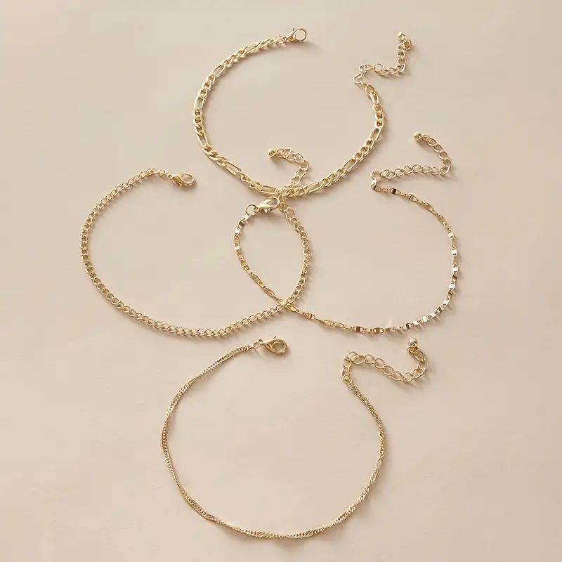 Елегантний браслет (4 шт набір) колір золото, матеріал метал (біжутерія для рук та ніг, аксесуари для дівчат) 376054