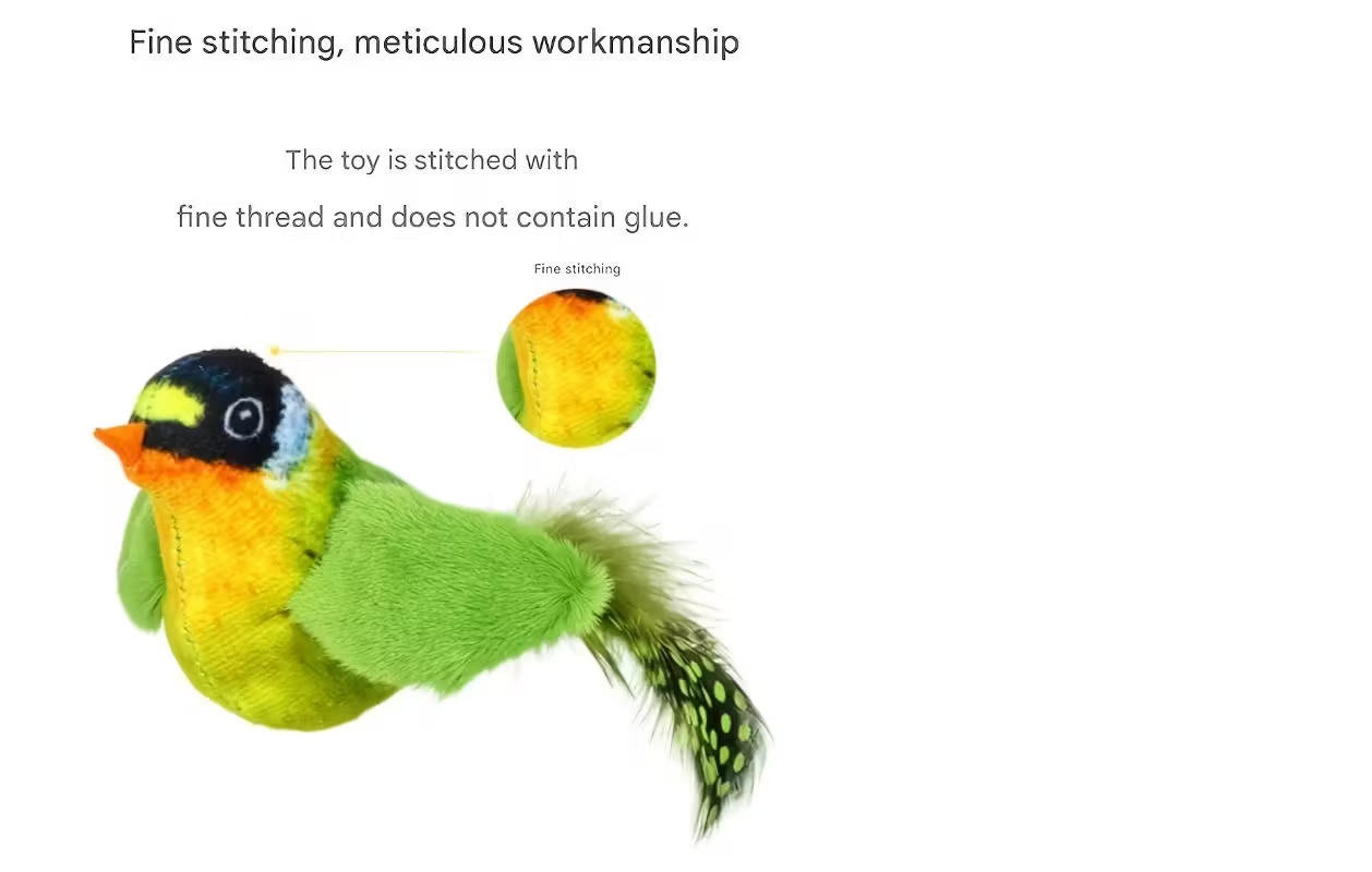 Інтерактивна плюшева іграшка-дражнилка для котів у вигляді пташки - реалістичний цвірінь, пухнаста пір'яна паличка, ручна робота, штучний політ, ідеально для самостійної гри та полювання, підходить для всіх порід котів, інтерактивна іграшка для котів