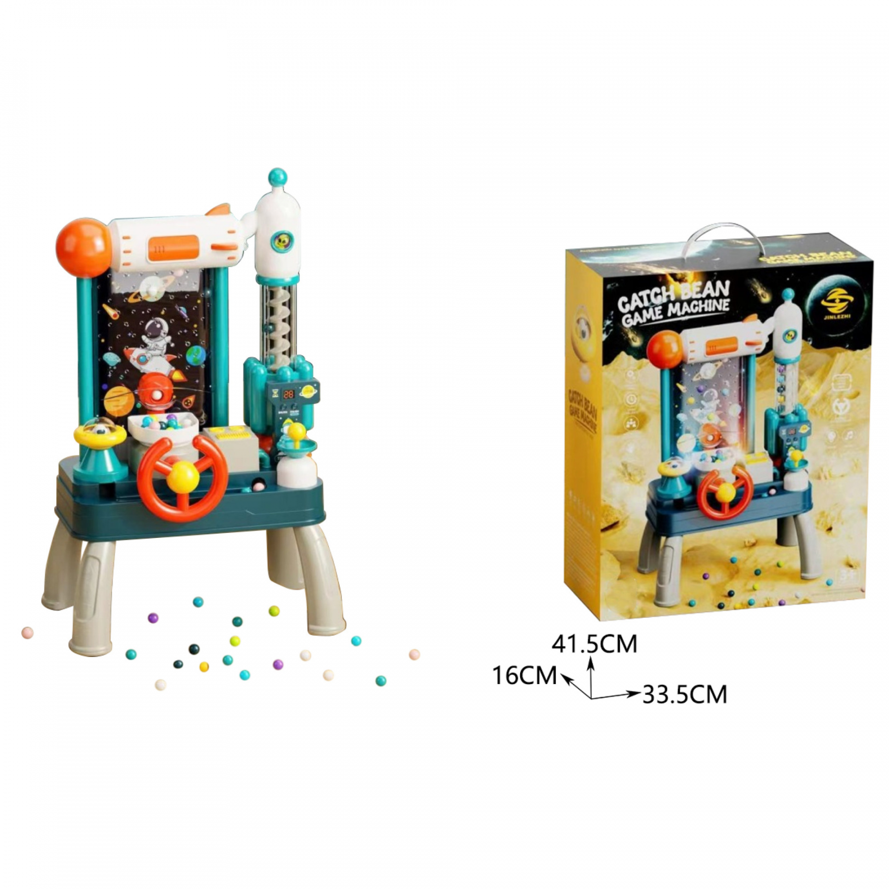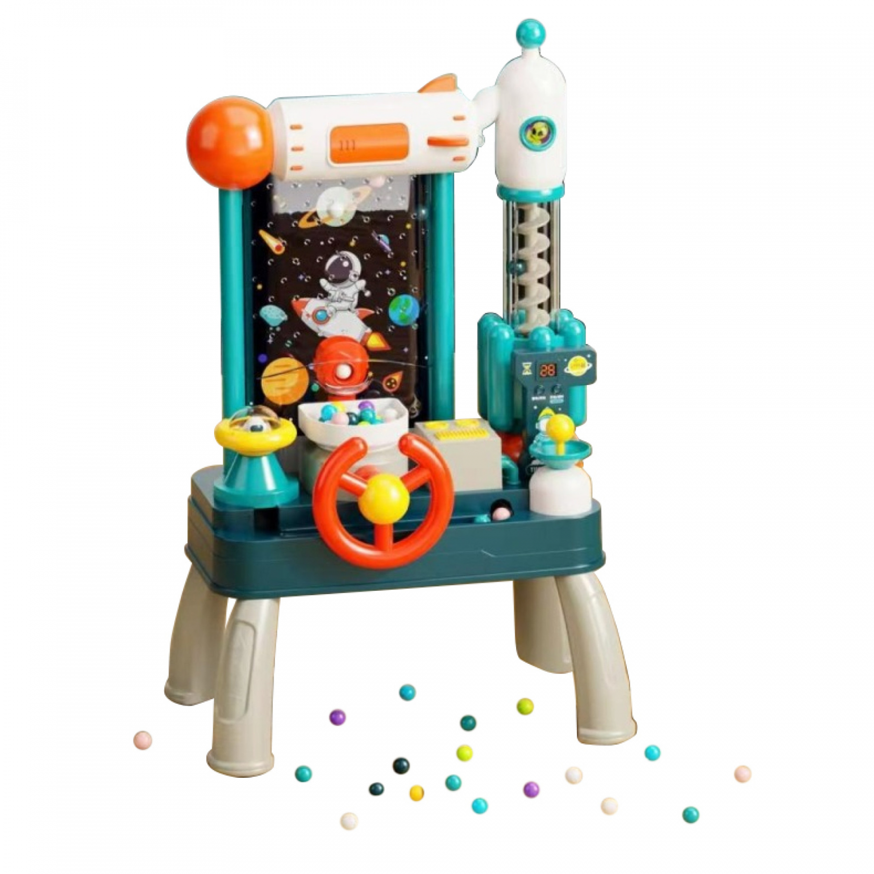 За допомогою керма дитина зможе рухати вежею і намагатиметься зловити якнайбільше кольорових крапельок, які падатиму зверху.