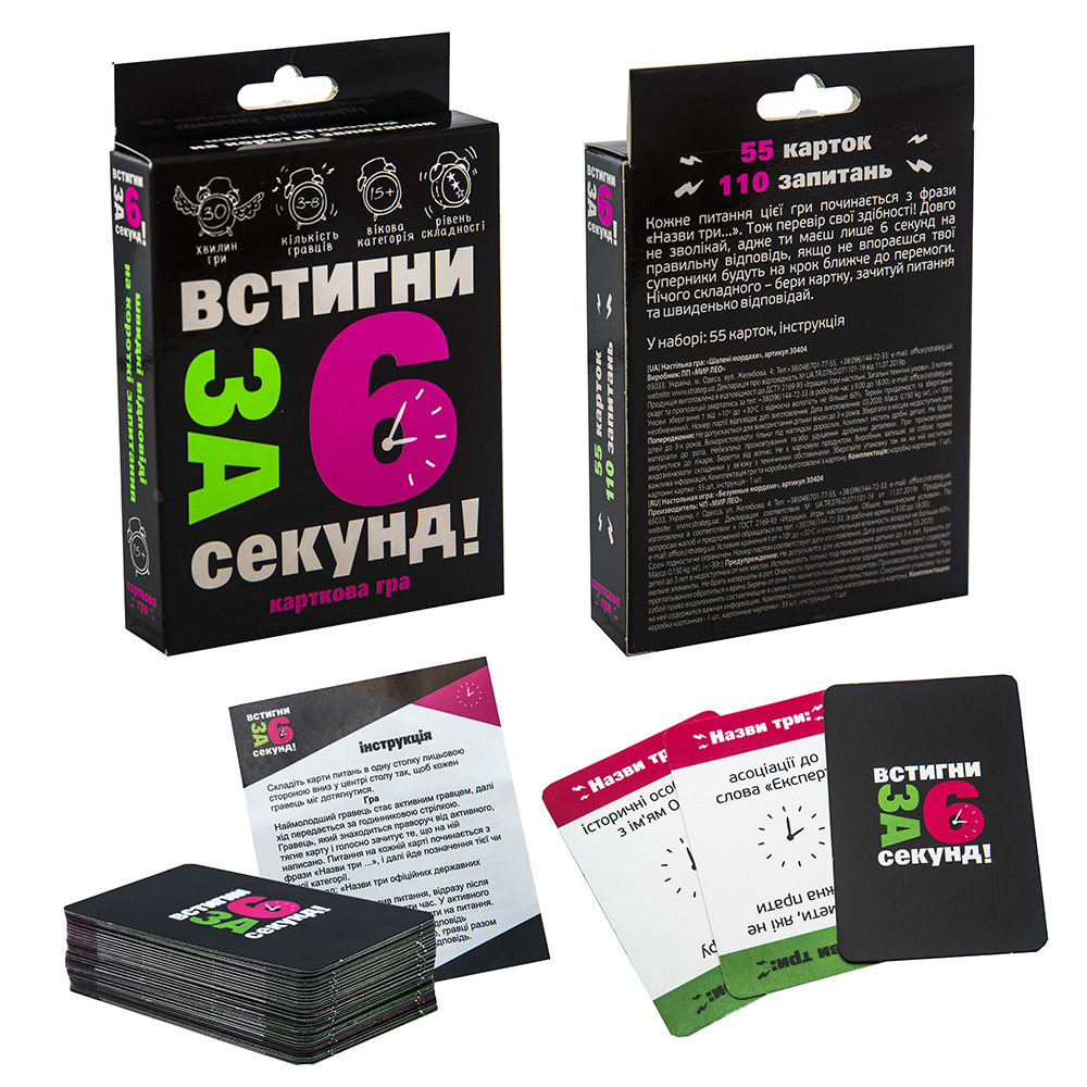 Карткова гра 30404 (укр) "Встигни за 6 секунд Вік15+ в кор-ці 13,5-9-2,2 см