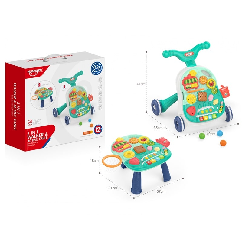 Дитяча іграшка для малюка ходунки каталка - столик інтерактивний 2в1 зі світлом та музикою HE0814 HUANGER