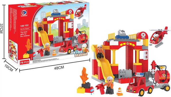 За допомогою такого конструктора дитина зможе побудувати пожежну станцію, пожежну машину, а також пожежний вертоліт.
