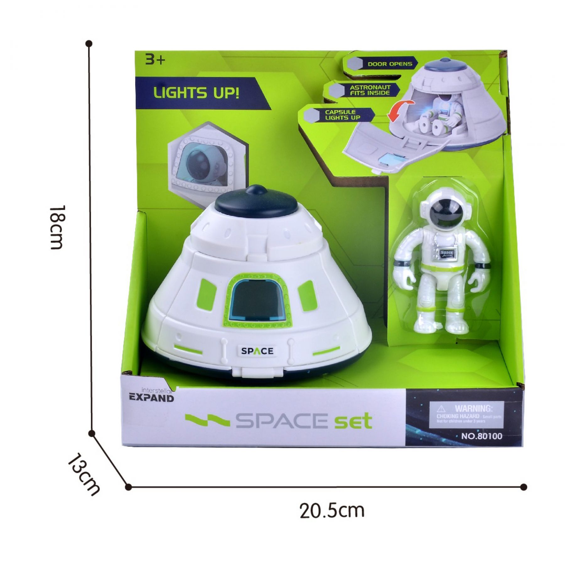 Космічна капсула серії Interstellar Expand, має округлу форму, що імітує справжній спускний апарат. Головною особливістю є відкидний люк, який відкриває доступ до внутрішньої кабіни. Усередині капсули є місце для фігурки космонавта. Після розміщення фігурки або натискання кнопки активуються світлові ефекти.У комплект входити одна фігурка космонавта в білому скафандрі з рухомими руками та ногами, що дозволяє дитині сажати її в капсулу.
