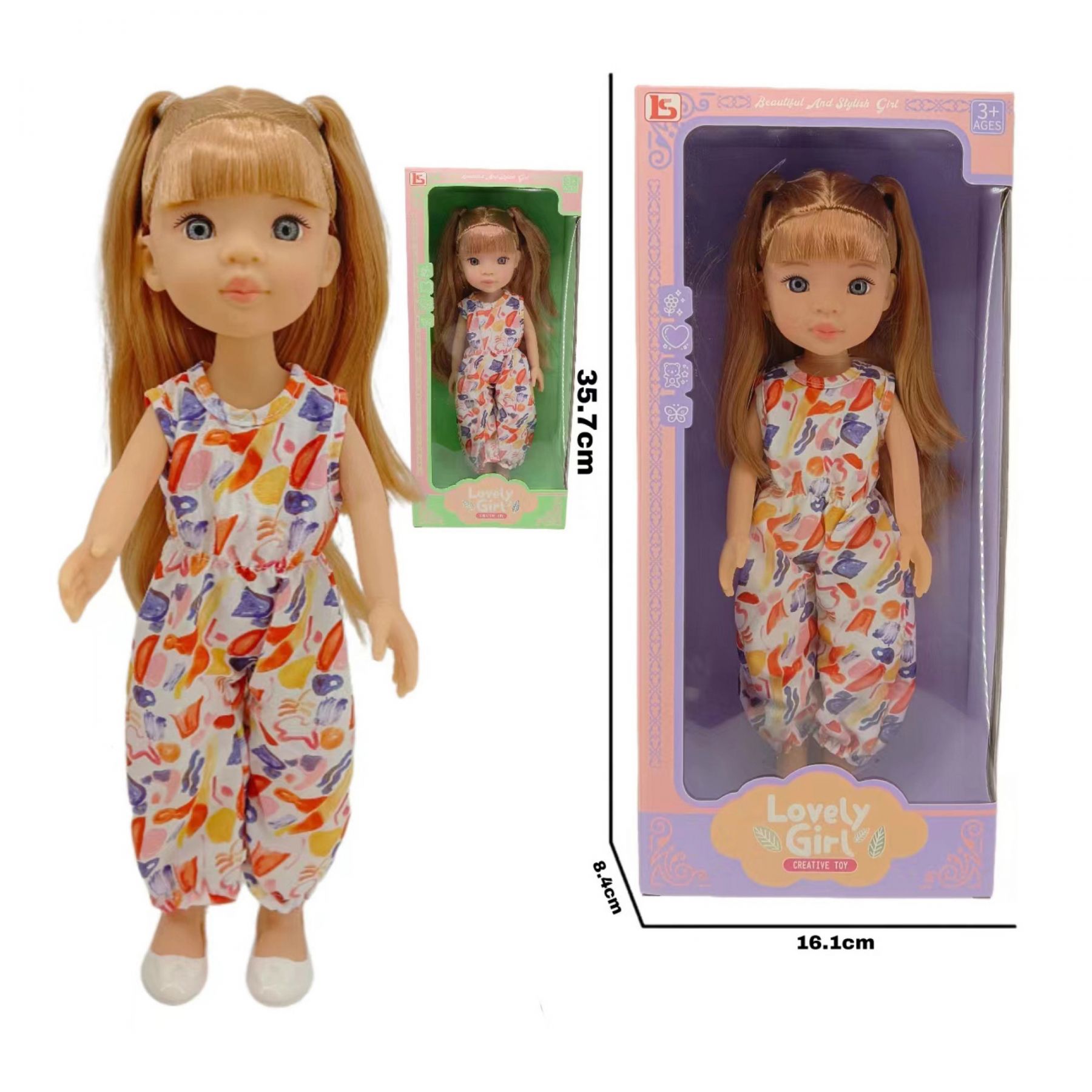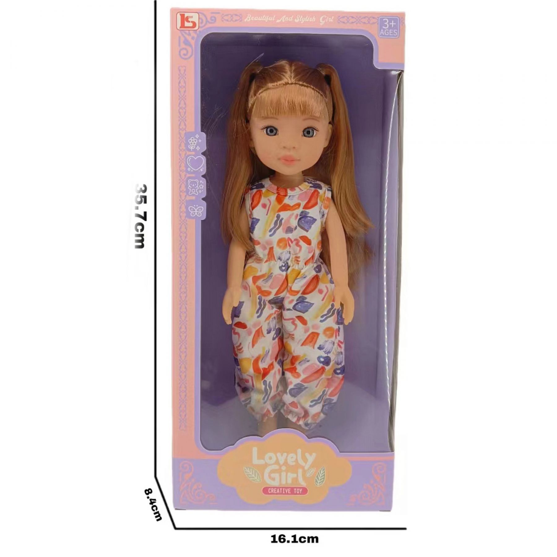Лялька Lovely Girl має вишуканий дизайн - довге каштанове, блискуче волосся, яке можна розчісувати і укладати, реалістичні блакитні очі.