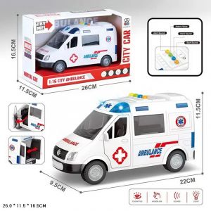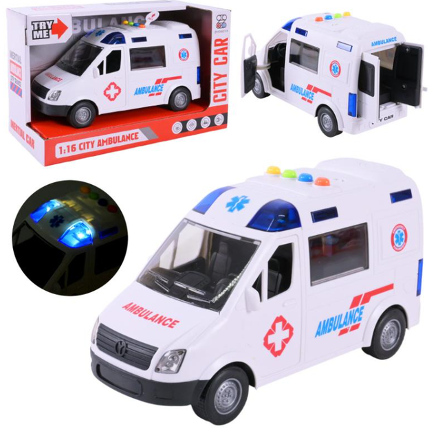 Дитяча іграшка машинка швидка допомога ZY221A фрикційний механізм, світло, звук, відео в описі