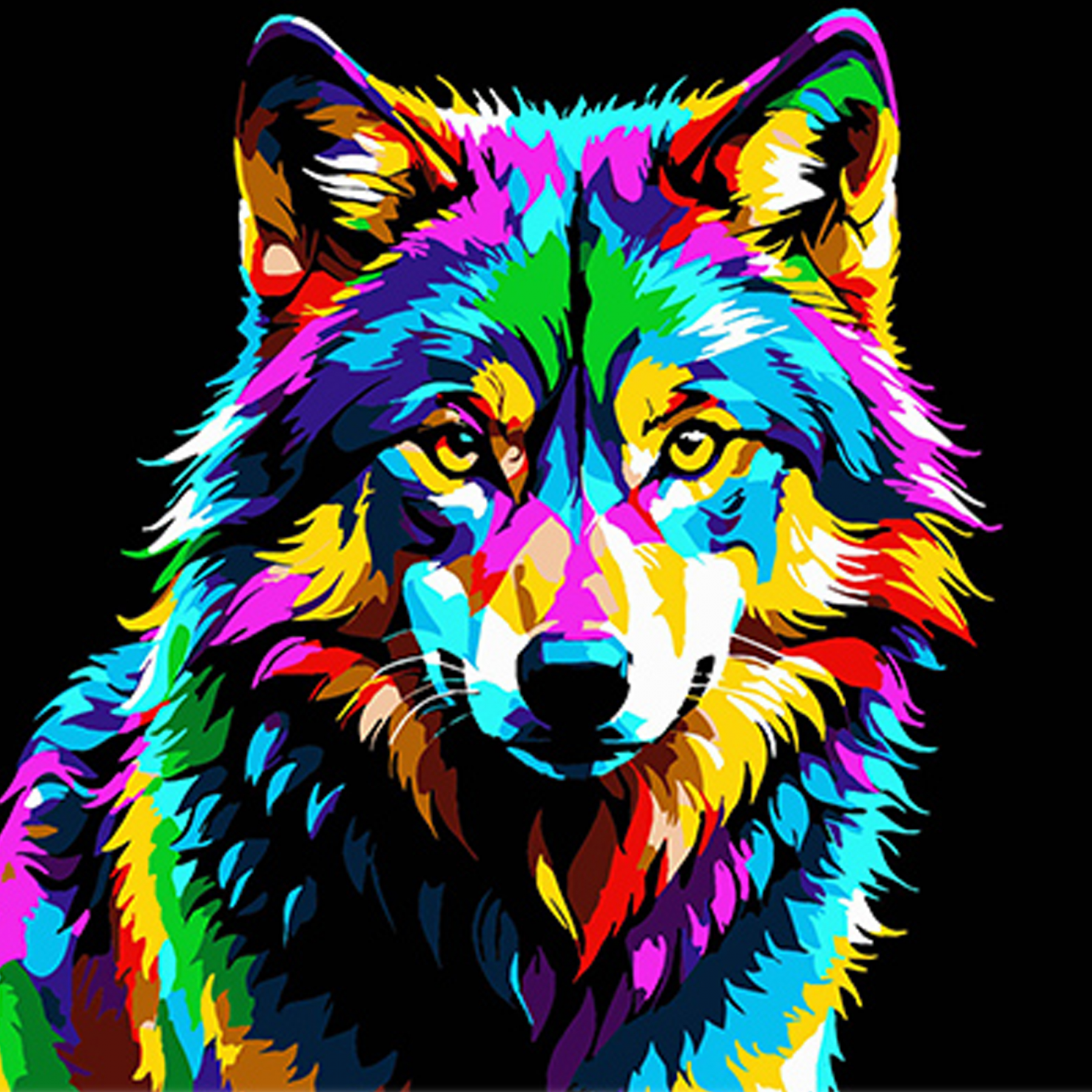 Картина за номерами Strateg ПРЕМІУМ Барвистий вовк на чорному фоні розміром 30х30 см (SH3030-4)