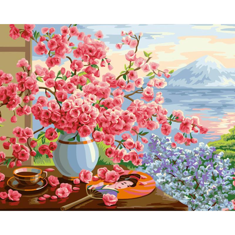 Живопис розпис картина за номерами Квіти на підвіконні Strateg розміром 40х50 см (GS1515)