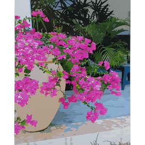 Живопис розпис картина за номерами Рожеві квіти на підвіконні Strateg розміром 40х50 см (SY6824)