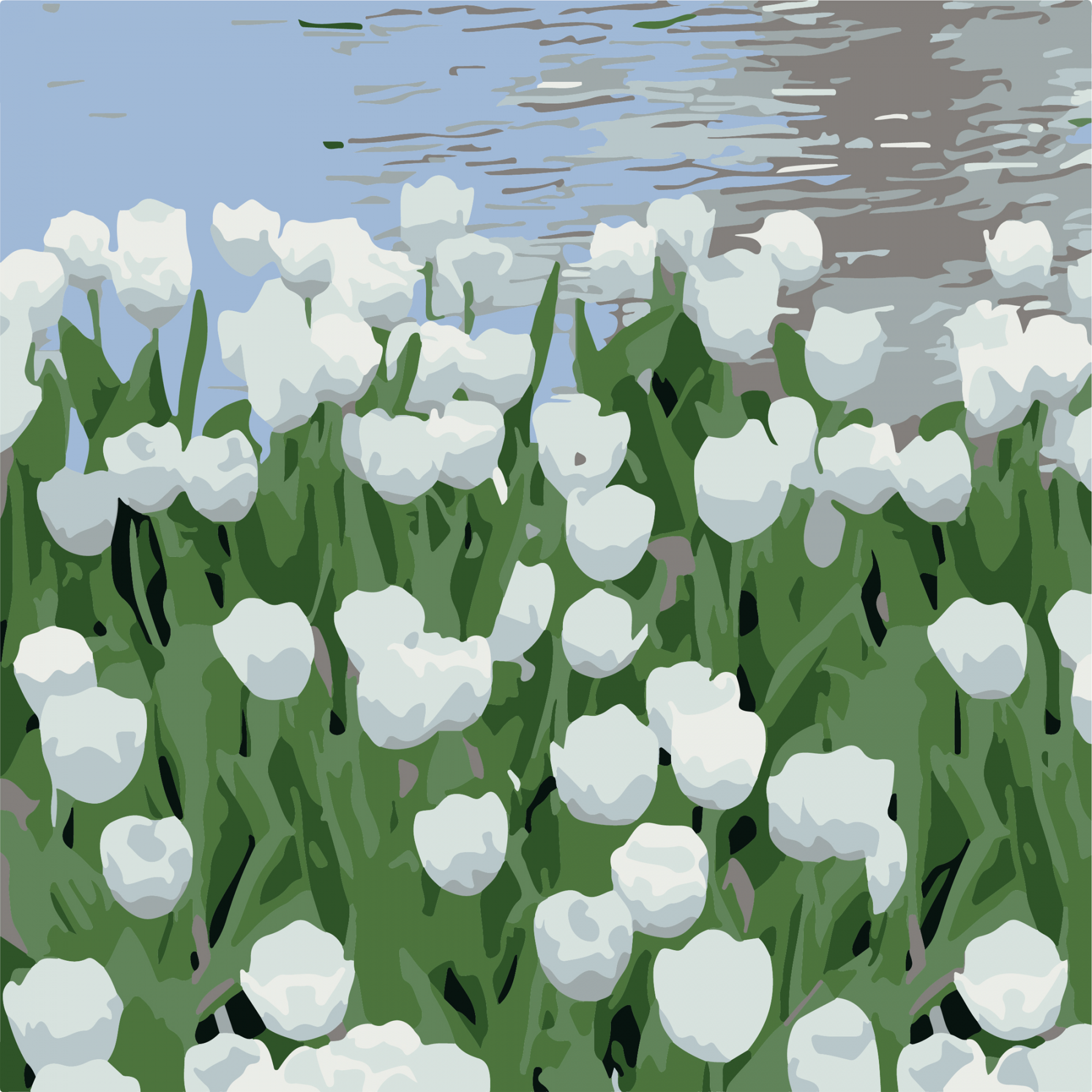 Живопис розпис картина за номерами Тюльпани біля води Strateg розміром 20х20 см (HH8014-10)