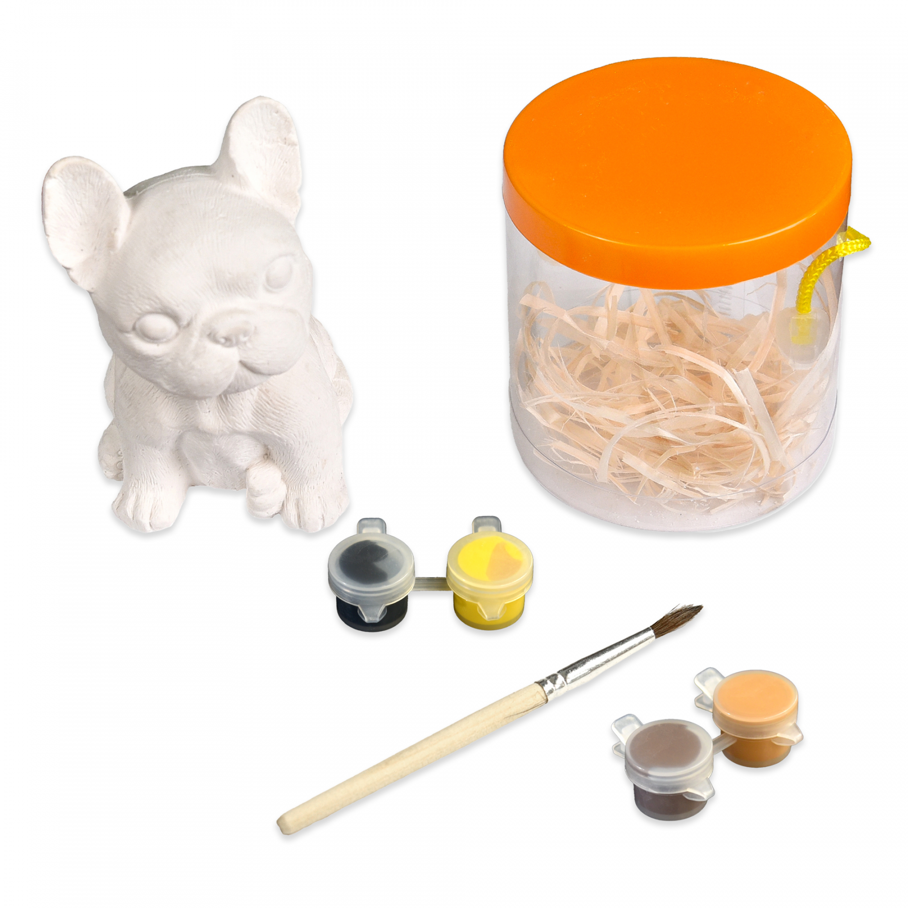 У наборі — гіпсова фігурка песика й фарби, щоб розмалювати її на свій смак. Чудова розвага й яскравий подарунок.