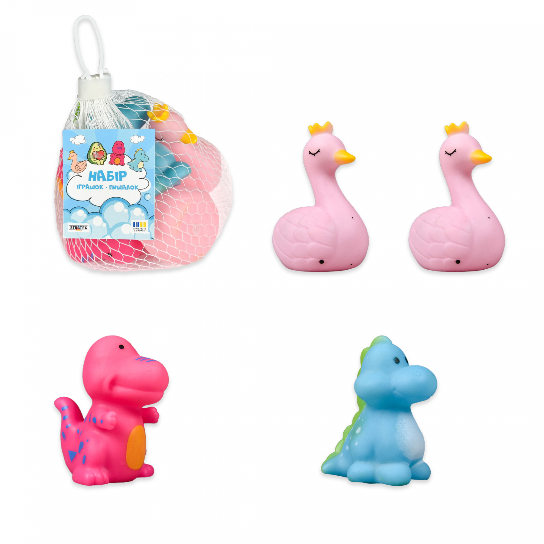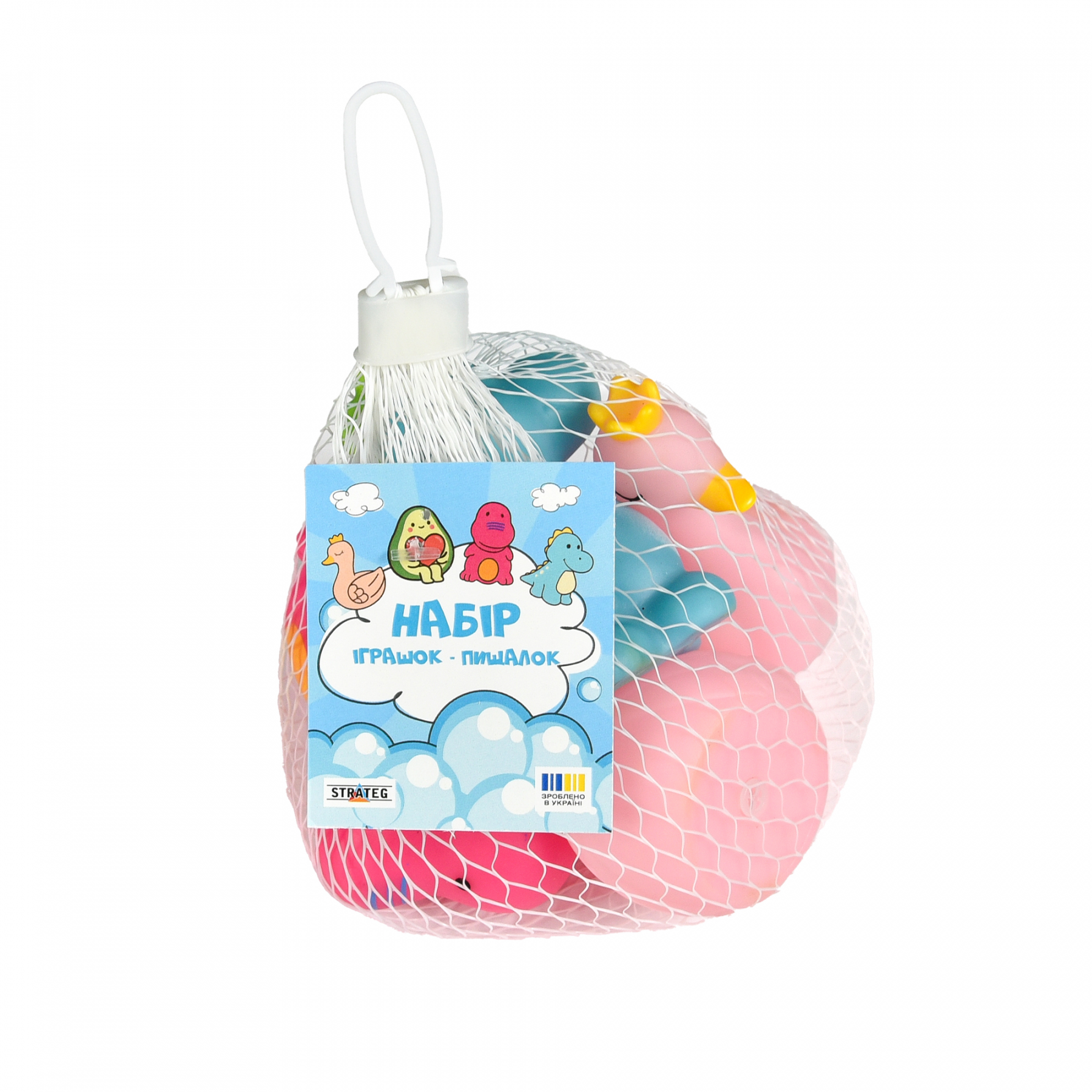 «Набір іграшок-пищалок Strateg, що привертають увагу й видають звук при натисканні. Іграшки розвивають дрібну моторику, координацію рухів і дарують малюкам гарний настрій.