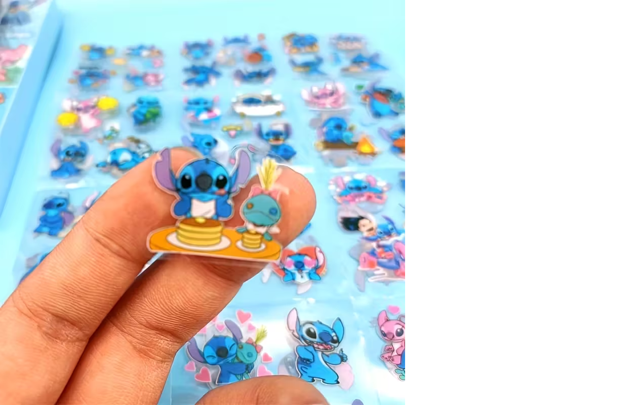 Прозорі наклейки з мотивом стіч - яскраві дизайни мультфільмів для самостійного декору на вантажі, гаманцях, пляшках з водою та журналах