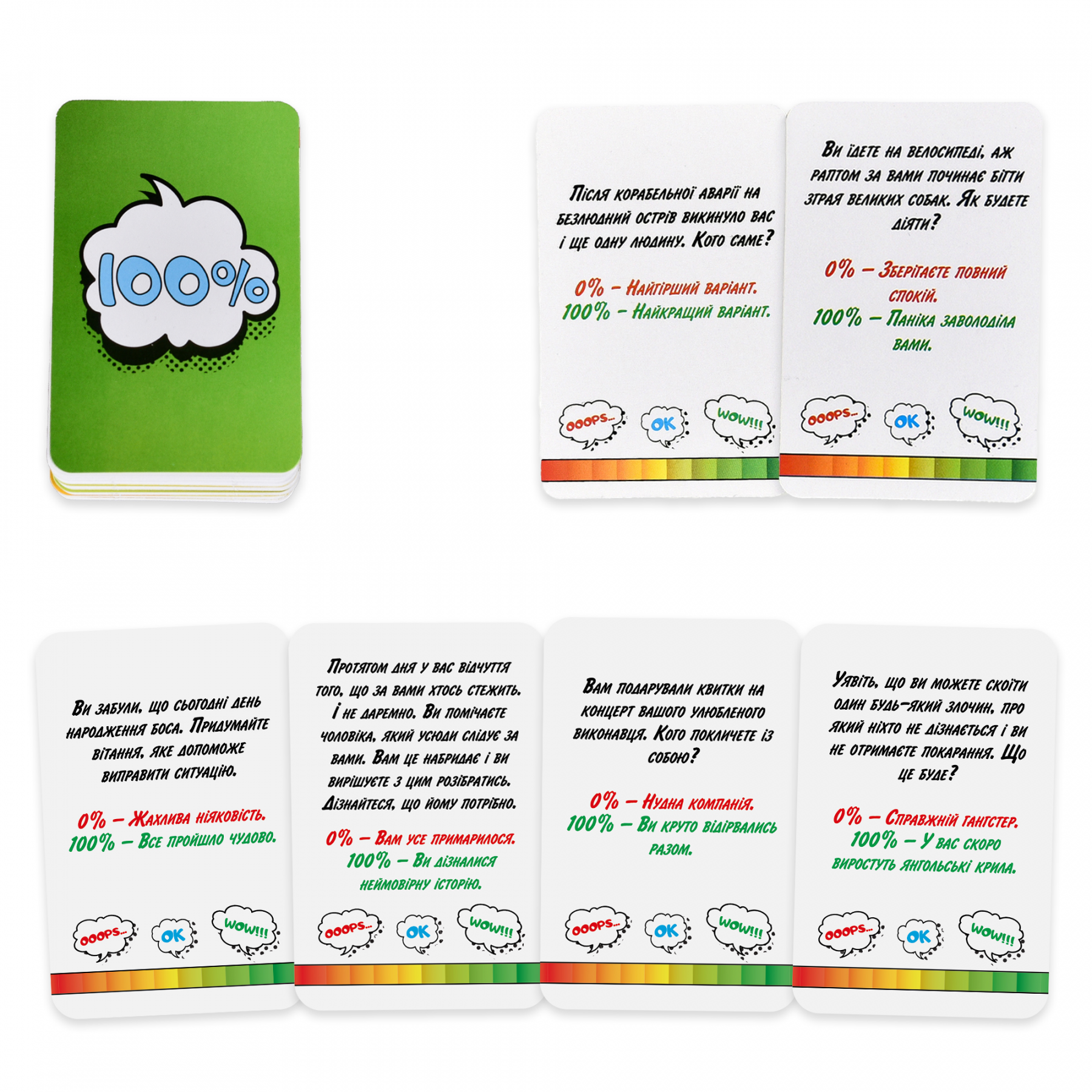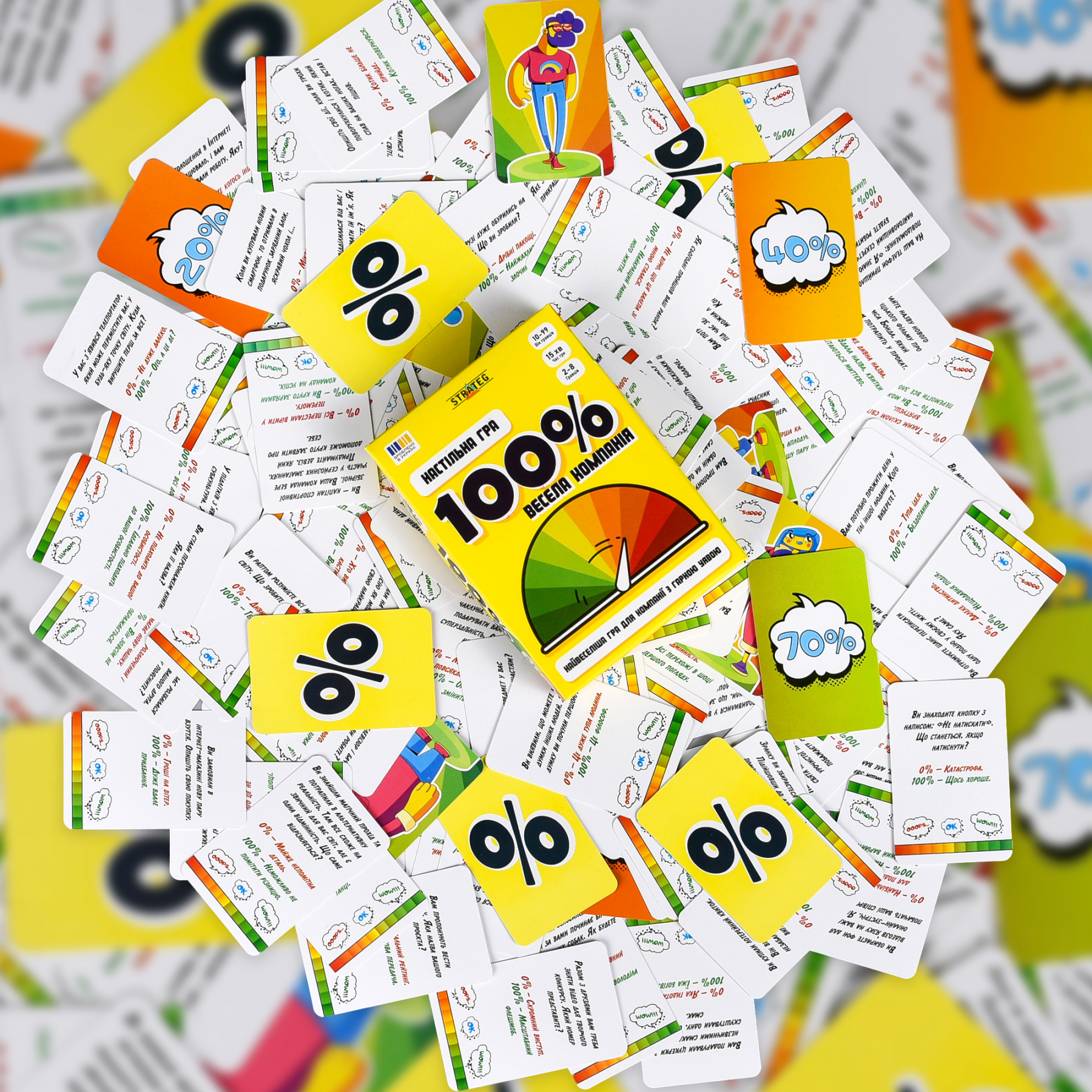 100% Весела компанія — розважальна кооперативна настільна гра, у якій ви зможете перемогти лише, якщо будете розуміти вподобання одне одного.