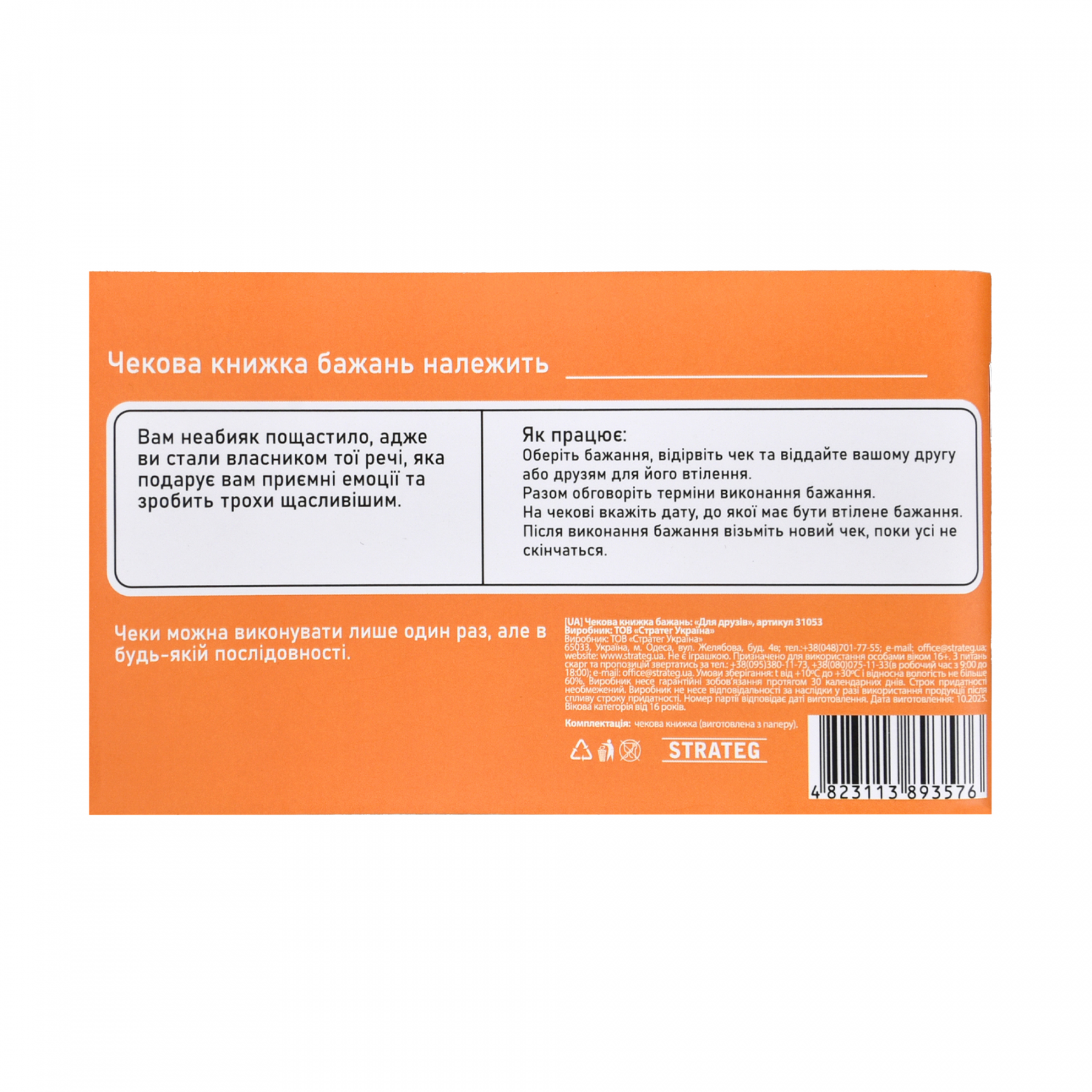 Настільна гра (вік 16+) Чекова книжка бажань - для друзів (31053 Strateg ) (відео в описі)