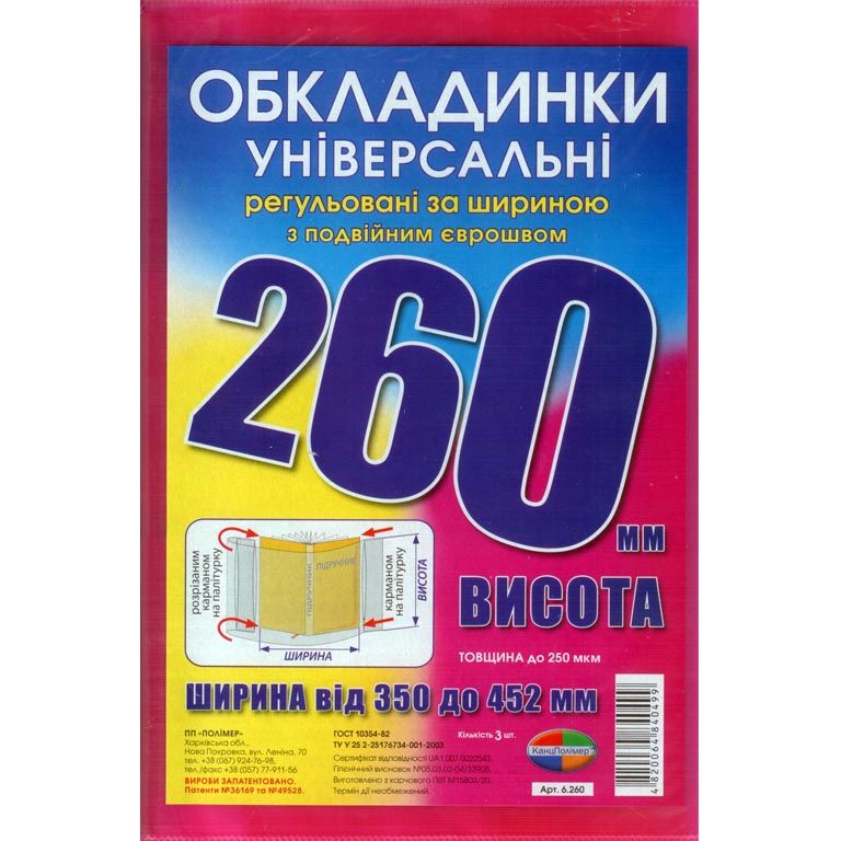 Обкладинки універсальні регульовані по ширині, висота 260мм