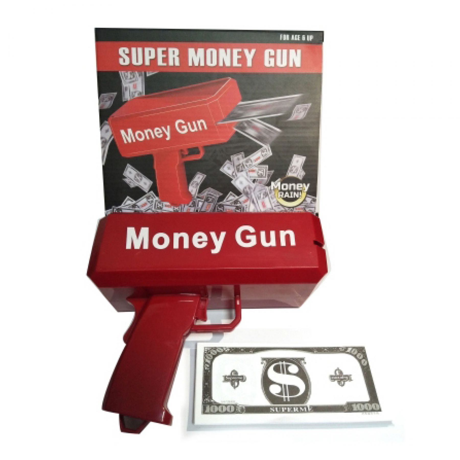 Money Gun— це популярна іграшка-пістолет, яка створює ефект «грошового дощу», розкидаючи у повітрі сувенірні купюри чи навіть справжні банкноти.