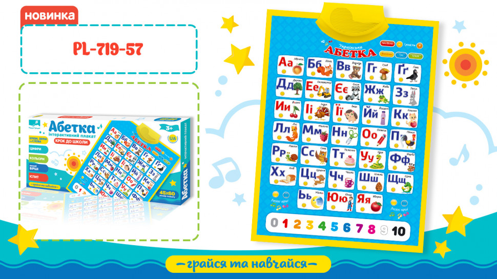 Дитяча іграшка Плакат навч. "Абетка" арт. PL-719-57 (24шт/2) укр. плакат, батар., короб. 49*23*4 см