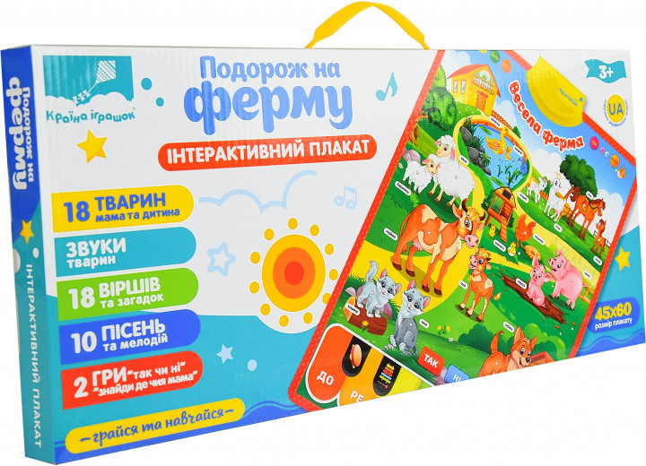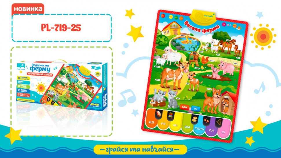 Дитяча іграшка розвиваюча навчальний інтерактивний плакат весела ферма PL-719-25, розмір 45х60см