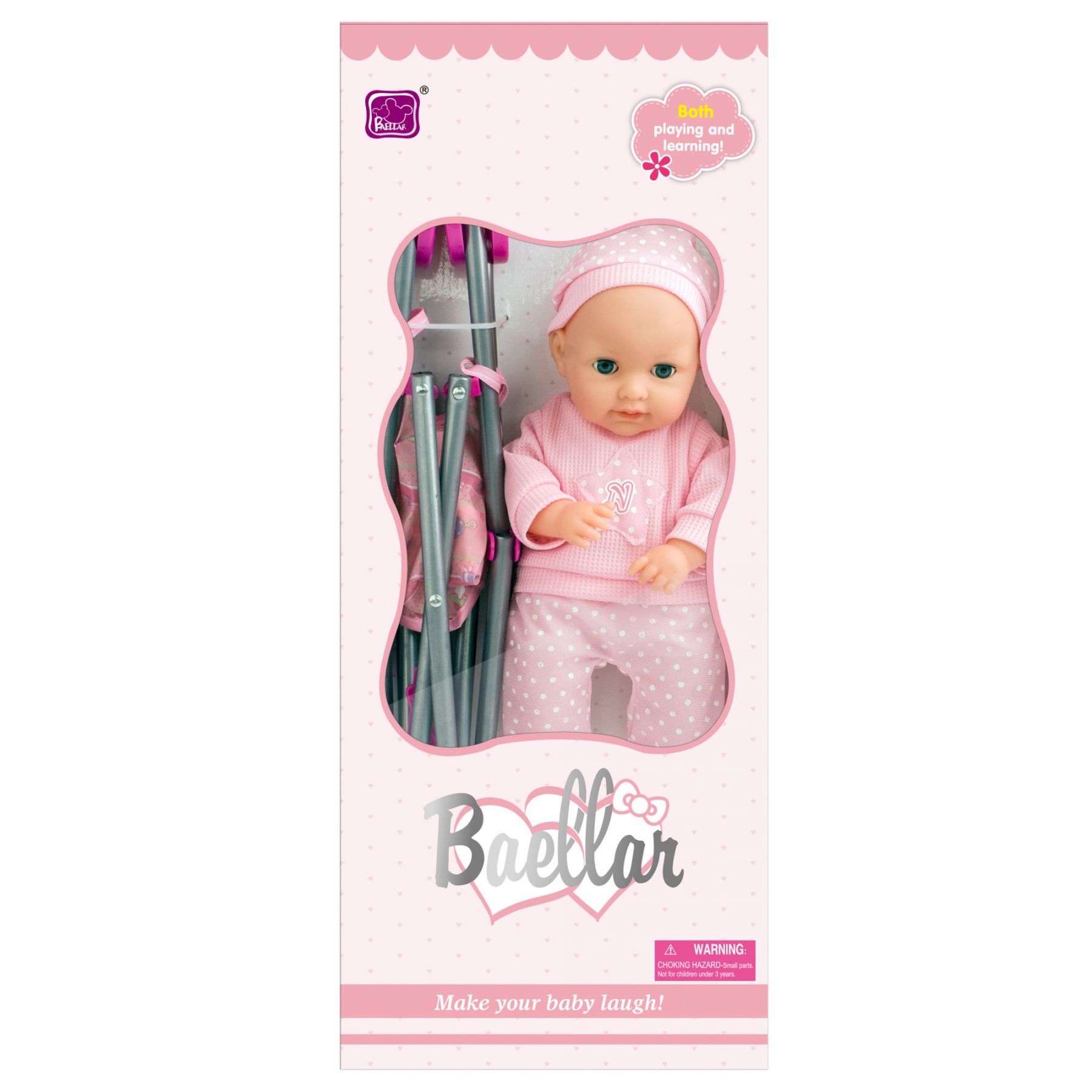 Пупс Baellar. Набір включає ляльку пупса в милому рожевому костюмчику в білий горошок та іграшкову коляску для прогулянок.