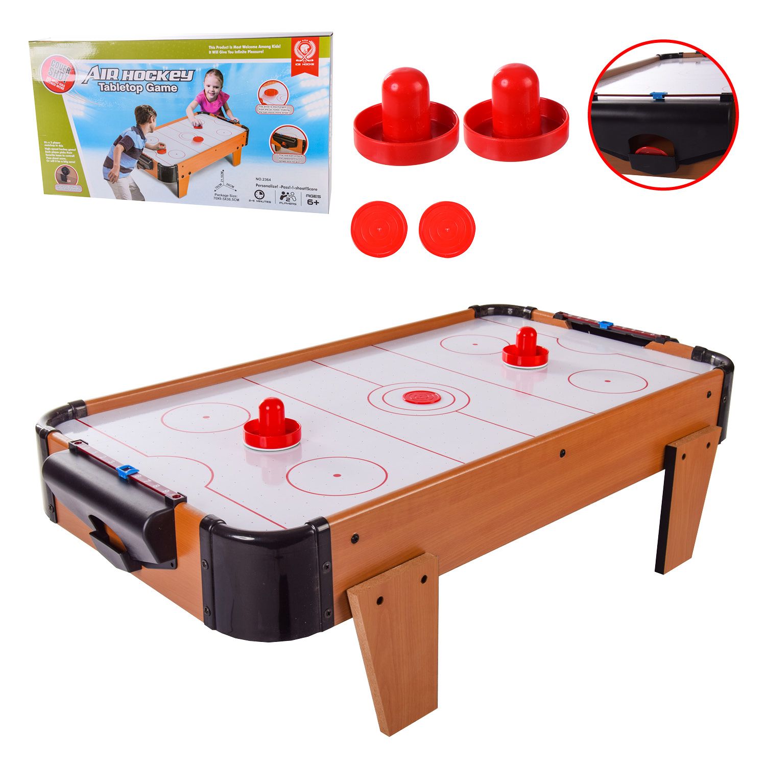 Настільна гра «Аерохокей» У комплекті: - ігровий стіл - 2 біти - 2 шайби Батарейки 6 шт. типу АА у комплект не входять. Повітряний хокей – це відмінне проведення часу для всієї родини. Дітям такагра допоможе розвинути моторику рук, швидкість реакції, кмітливість, спритність, координацію рухів, а дорослим принесе масу задоволення та легку ностальгію про дитинство. Дитячий повітряний хокей – чудова розвага для дітей. Тепер не потрібно йти в ігрові центи, щоб пограти в повітряний хокей, його можна поставити в будь-якій кімнаті і він не займе багато місця. Правила прості: шайбу у ворота супротивника загнати якнайбільше разів. Розміри іграшки: 70*38*21см, Короб. 70*9,5*38,5см