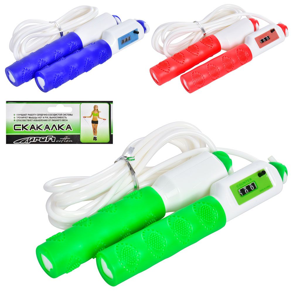 Спортивна гра скакалка 270 см MS 3316 мотузка гума лічильник ручка пластик 3 кольори, кул., 14-24-3см.