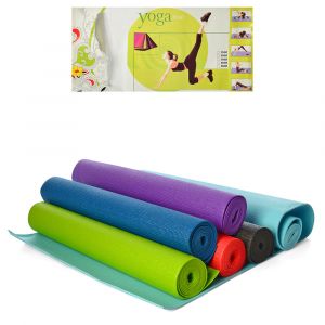 Спортивний інвентар коврик килимок для фітнесу йогамат MS 1846-2-1, матеріал ПВХ, розміри 173-61см., товщина 3 мм., мікс кольорів, кул., 61-8,5см. Йогамат, килимок для фітнесу ідеально підходить для занять йогою і фітнесом. Асортимент містить 6 кольорів, тому кожен може вибрати килимок за своїм смаком. Поверхня килимка має спеціальну форму для запобігання ковзанню і під час виконання вправ приємна на дотик поверхня перешкоджає небажаному ковзанню, що гарантує безпеку під час занять. Йогамат повинен належати одній людині. Коврик забезпечує теплоізоляцію при контакті з холодною поверхнею. Килимок легкий, м 'який і компактний. Він легко миється і згортається. Розміри: 173x61x0,3 см Масеріал: ПВХ 6 кольорів