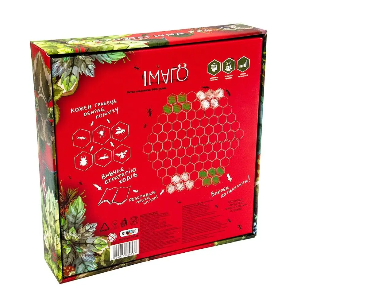 Продумати стратегію, тактичні ходи, підготувати наступ і перемогти противника. Це завдання яке потрібно виконати в стратегічній настільній грі «Імаго». Відповідно до правил і можливостей комах, необхідно здійснювати ходи і проводити тактичні бої для виконання стратегічного завдання. Перемога чекає гідного! Правила прості, але гра захопить учасників з першої партії.